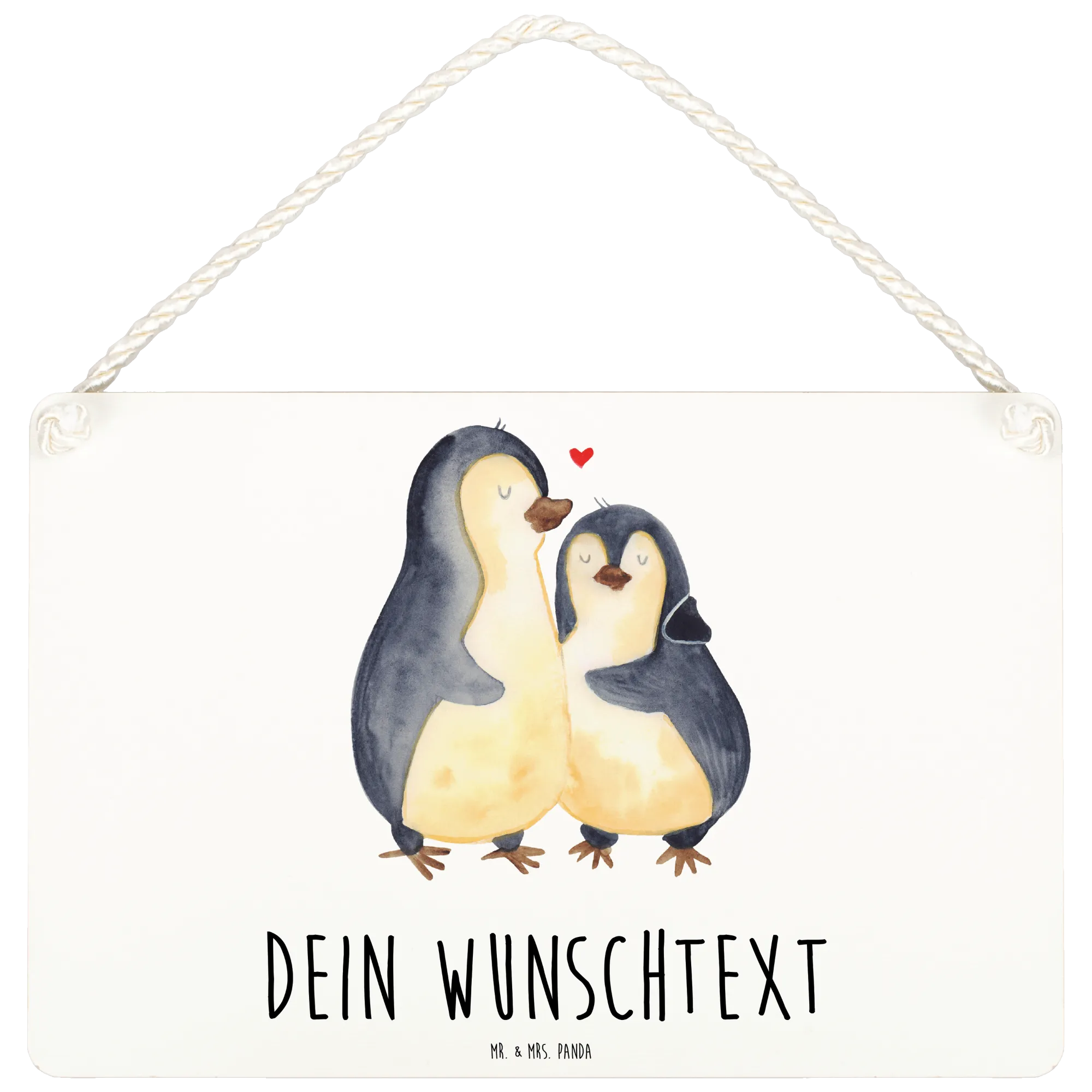 Das liebevoll gestaltete Motiv zeigt zwei süße Pinguine, die eng umschlungen sind und von einem kleinen roten Herz umgeben werden. Diese Illustration symbolisiert die innige Verbundenheit zwischen Partnern und die Freude an gemeinsamen Momenten. Egal, ob du das Schild zum Valentinstag, einem Jahrestag oder einfach als kleines Liebesgeschenk überreichen möchtest – es wird garantiert ein Hit!