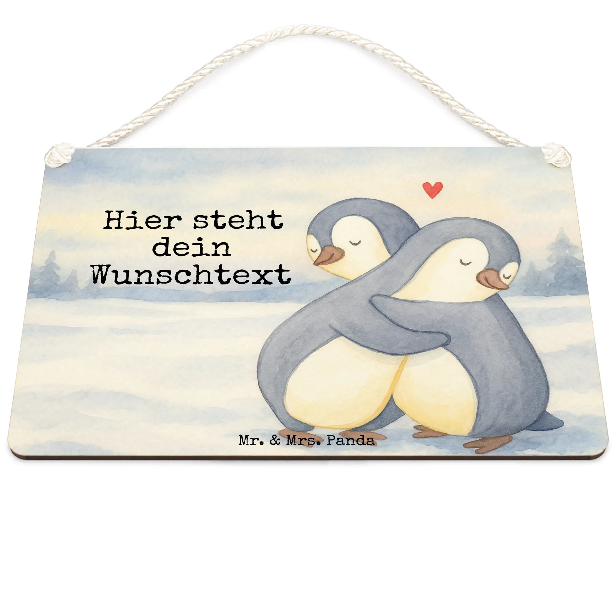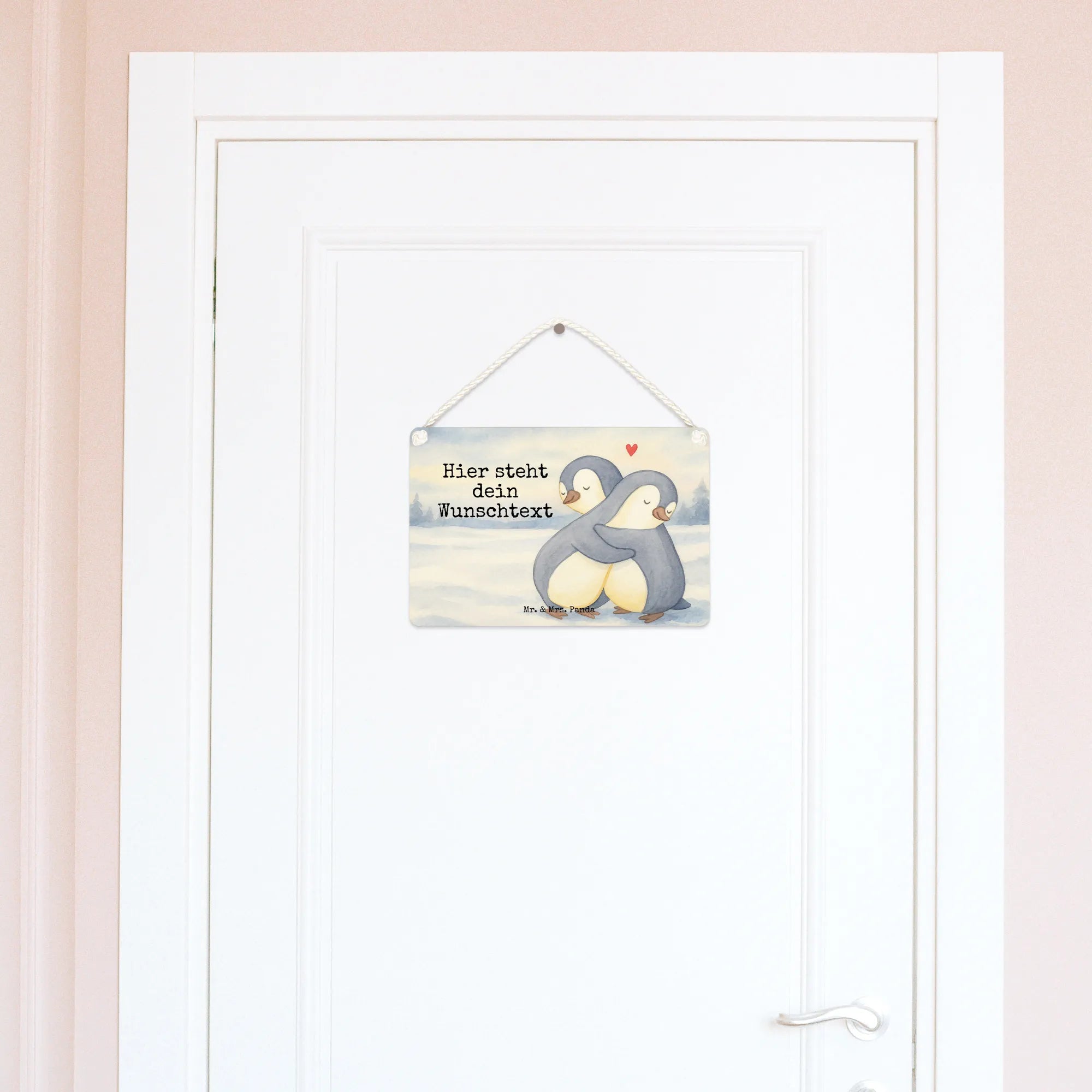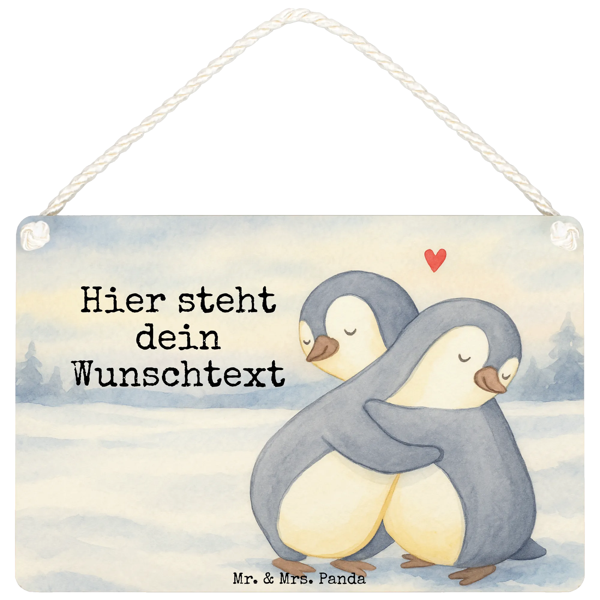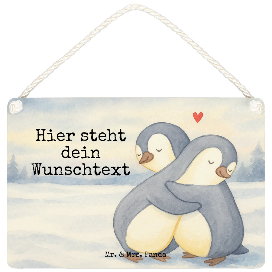 Personalisiertes Deko Schild Pinguine Kuscheln Design - DIN A6