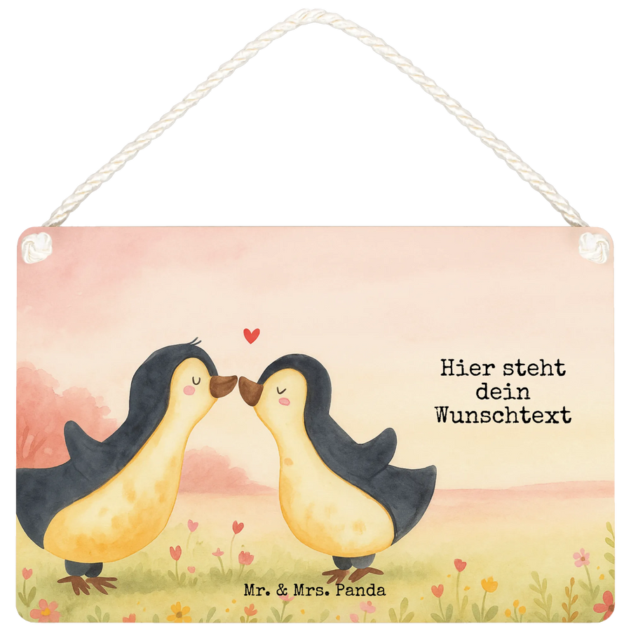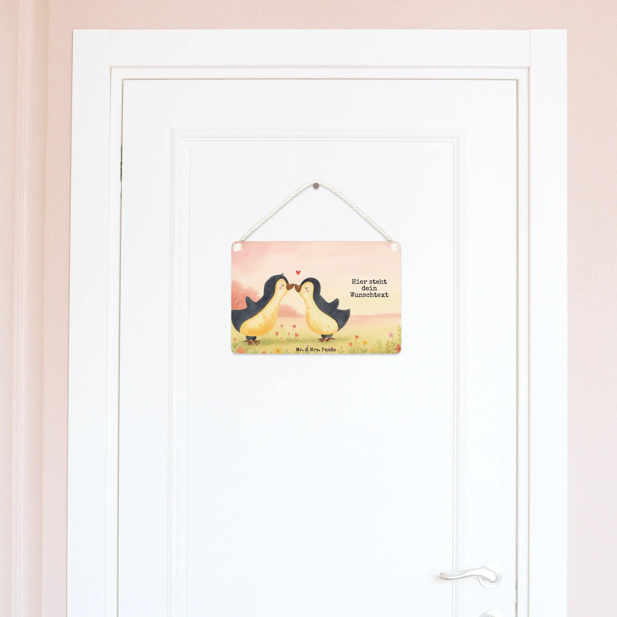 Personalisiertes Deko Schild Pinguine Kuss Design - DIN A6
