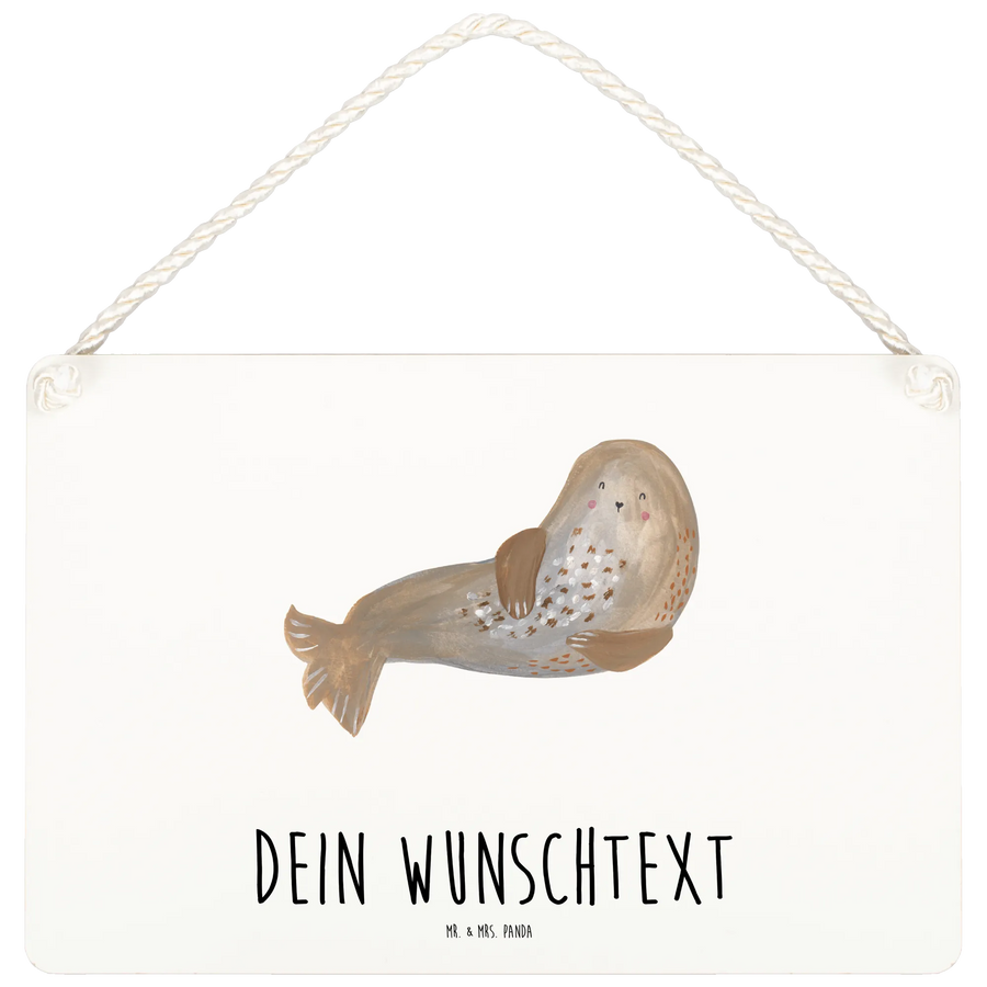 Personalisiertes Deko Schild Robbe Lachen - DIN A6 - Weiß