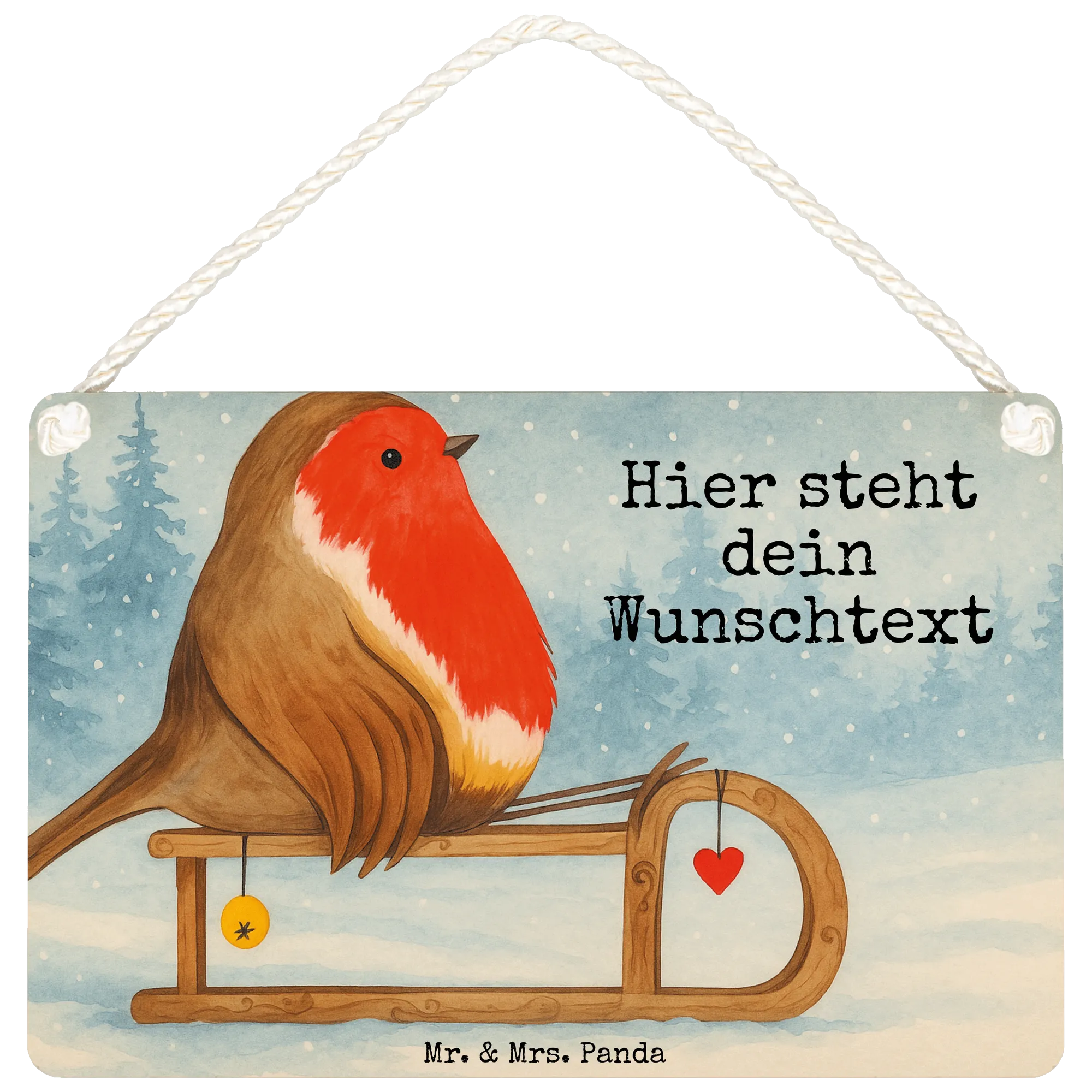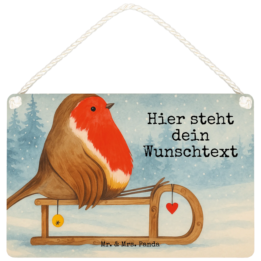 Personalisiertes Deko Schild Rotkehlchen Schlitten Design – Mr. & Mrs. Panda