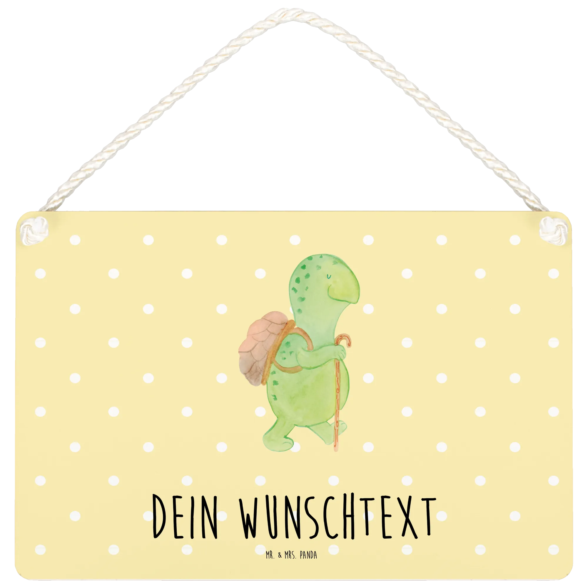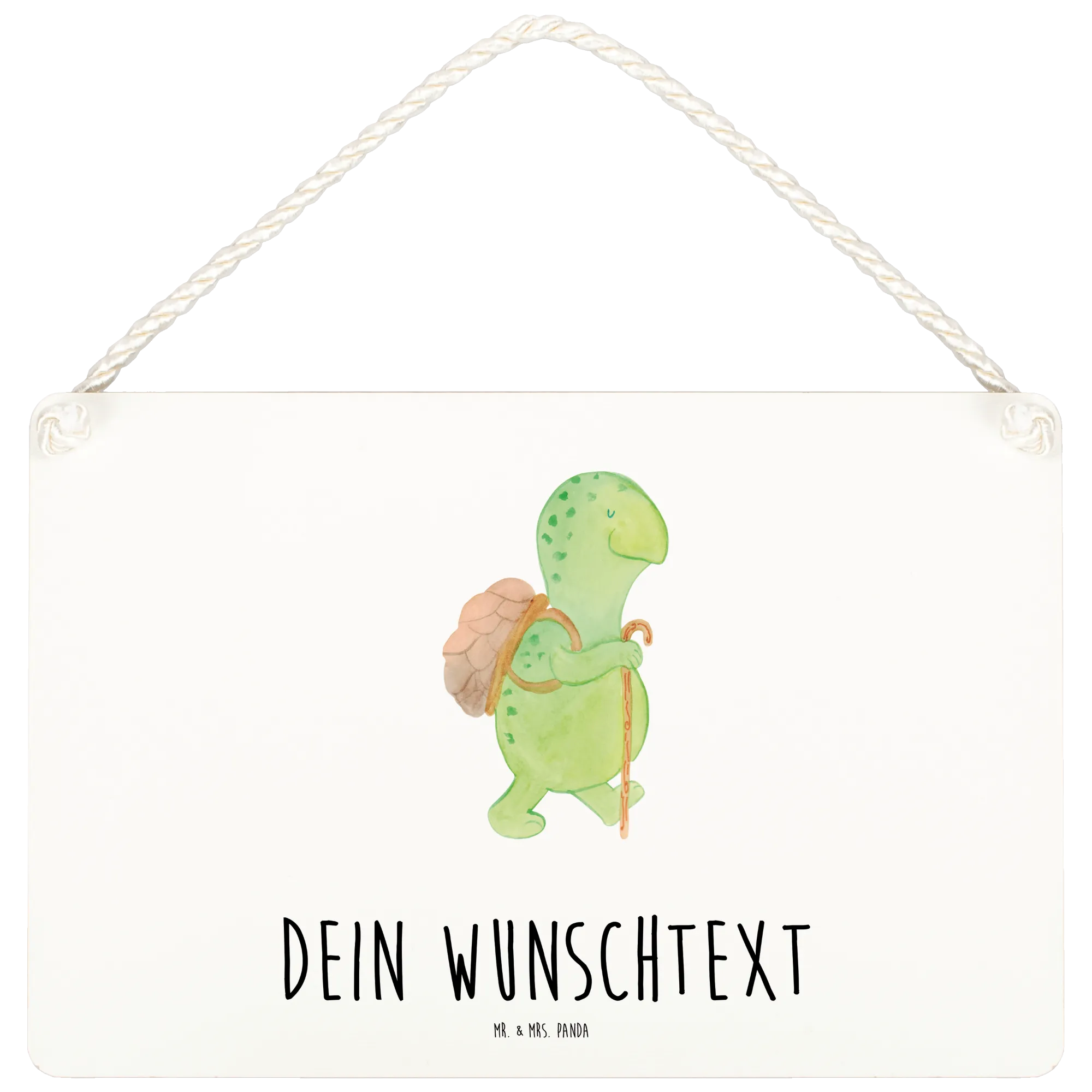 Personalisiertes Deko Schild Schildkröte Wanderer - DIN A6 - Weiß