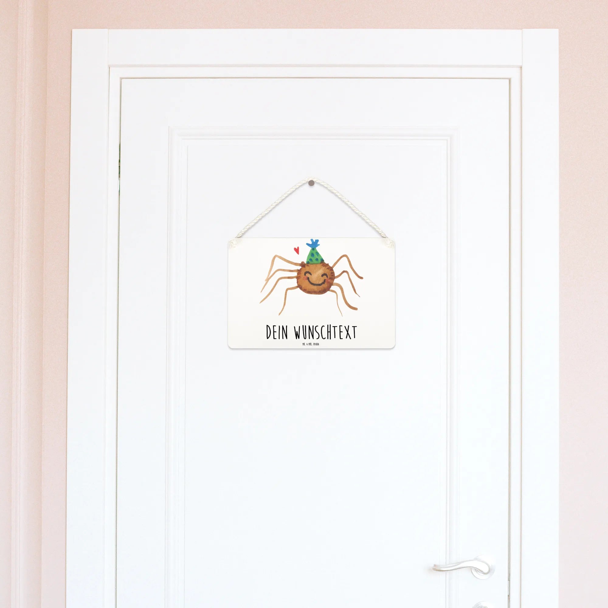 Das personalisierte Deko Schild mit dem Motiv Spinne Agathe Party aus der liebevollen Kollektion von Mr. & Mrs. Panda ist nicht nur ein wunderschönes Deko-Objekt, sondern auch eine tägliche Erinnerung an Selbstliebe und persönliches Glück. Mit einem fröhlichen Design, das von Mrs. Panda handgezeichnet wurde, strahlt die süße Spinne Agathe pure Freude aus. Sie trägt einen Partyhut und lächelt dich an, während sie ein kleines Herzchen neben sich hat. Dieses Schild ist ein perfektes Geschenk für alle, die Wert auf positive Botschaften und liebevolle Dekorationen legen.