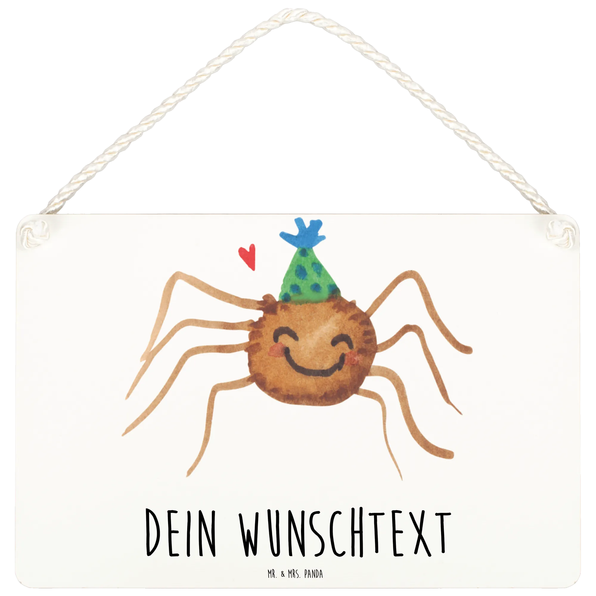 Personalisiertes Deko Schild Spinne Agathe Party - DIN A6 - Weiß