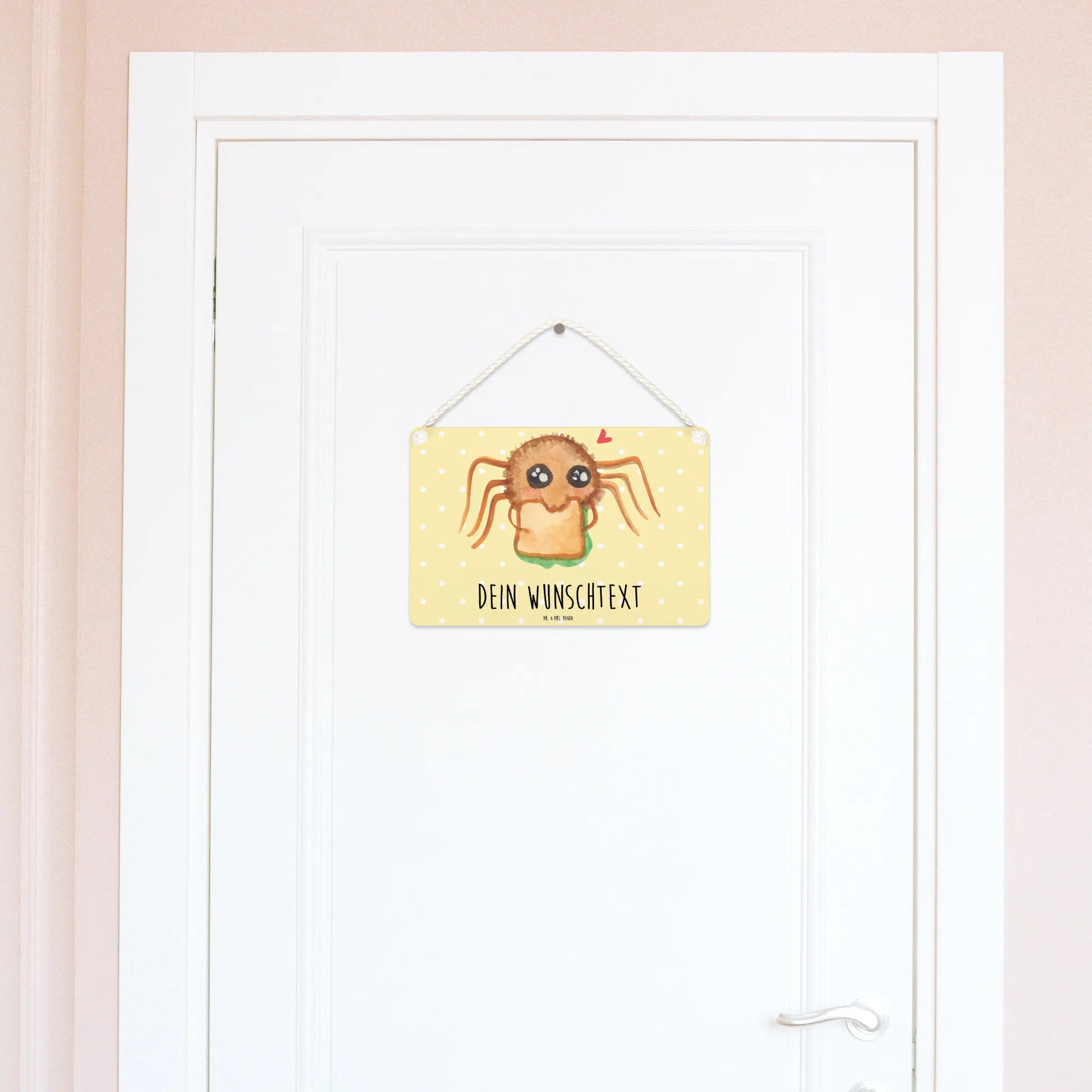 Das personalisierte Deko Schild "Spinne Agathe Sandwich" von Mr. & Mrs. Panda ist der ideale Begleiter für jeden, der Lebensfreude und Glück in sein Zuhause bringen möchte.