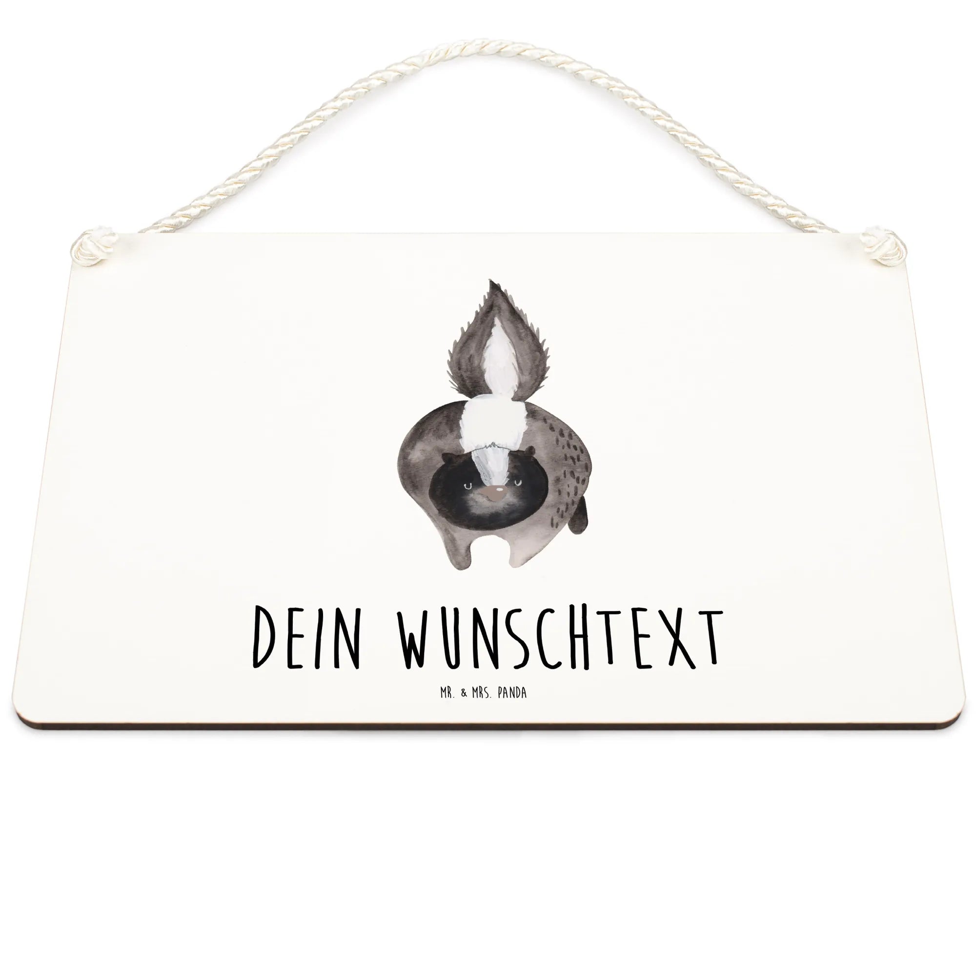 Du suchst nach dem perfekten Geschenk für einen besonderen Menschen in deinem Leben? Das personalisierte Deko Schild "Stinktier Angriff" aus der zauberhaften Stinktier-Kollektion von Mr. & Mrs. Panda ist genau das Richtige! Mit seinem fröhlichen, liebevoll handgezeichneten Stinktier-Motiv sorgt dieses Schild für ein Lächeln auf jedem Gesicht. Der süße, wütende Stinker mit seinem buschigen Schwanz zieht alle Blicke auf sich und bringt eine humorvolle Note in jedes Zuhause.