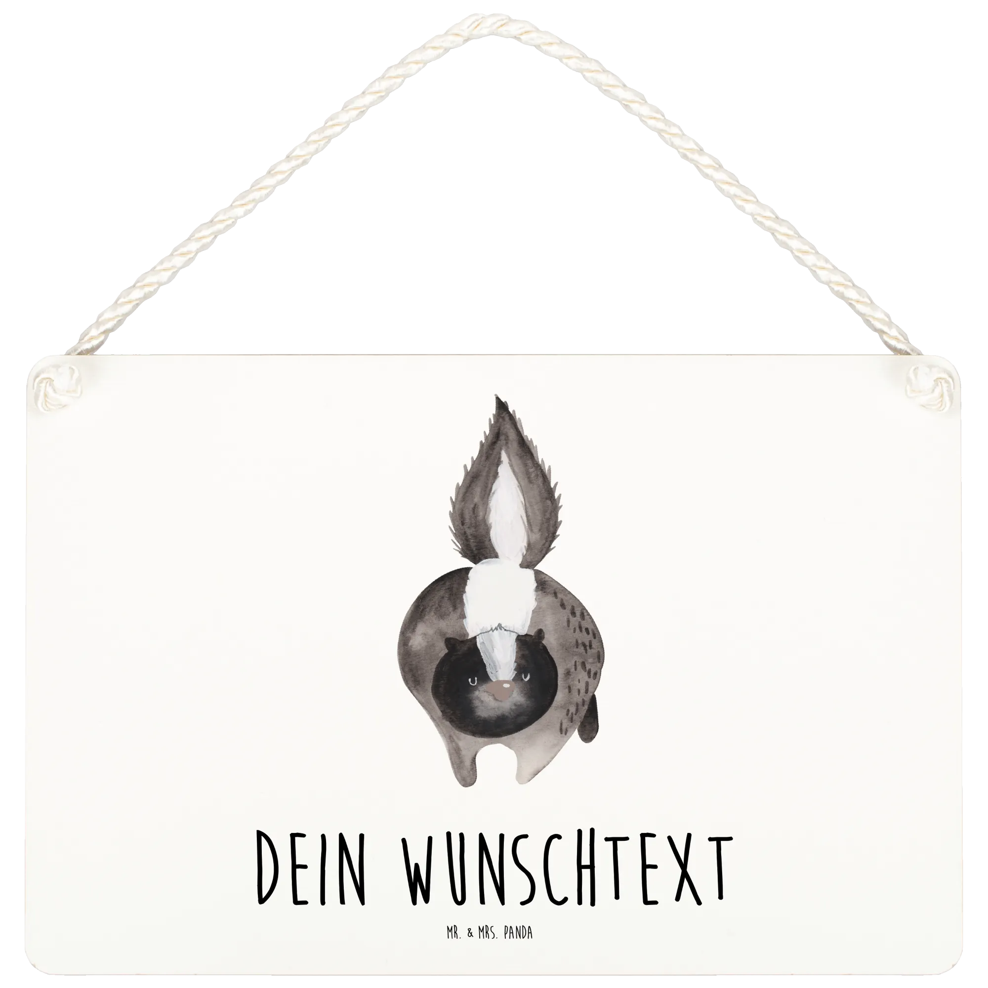 Personalisiertes Deko Schild Stinktier Angriff - DIN A6 - Weiß