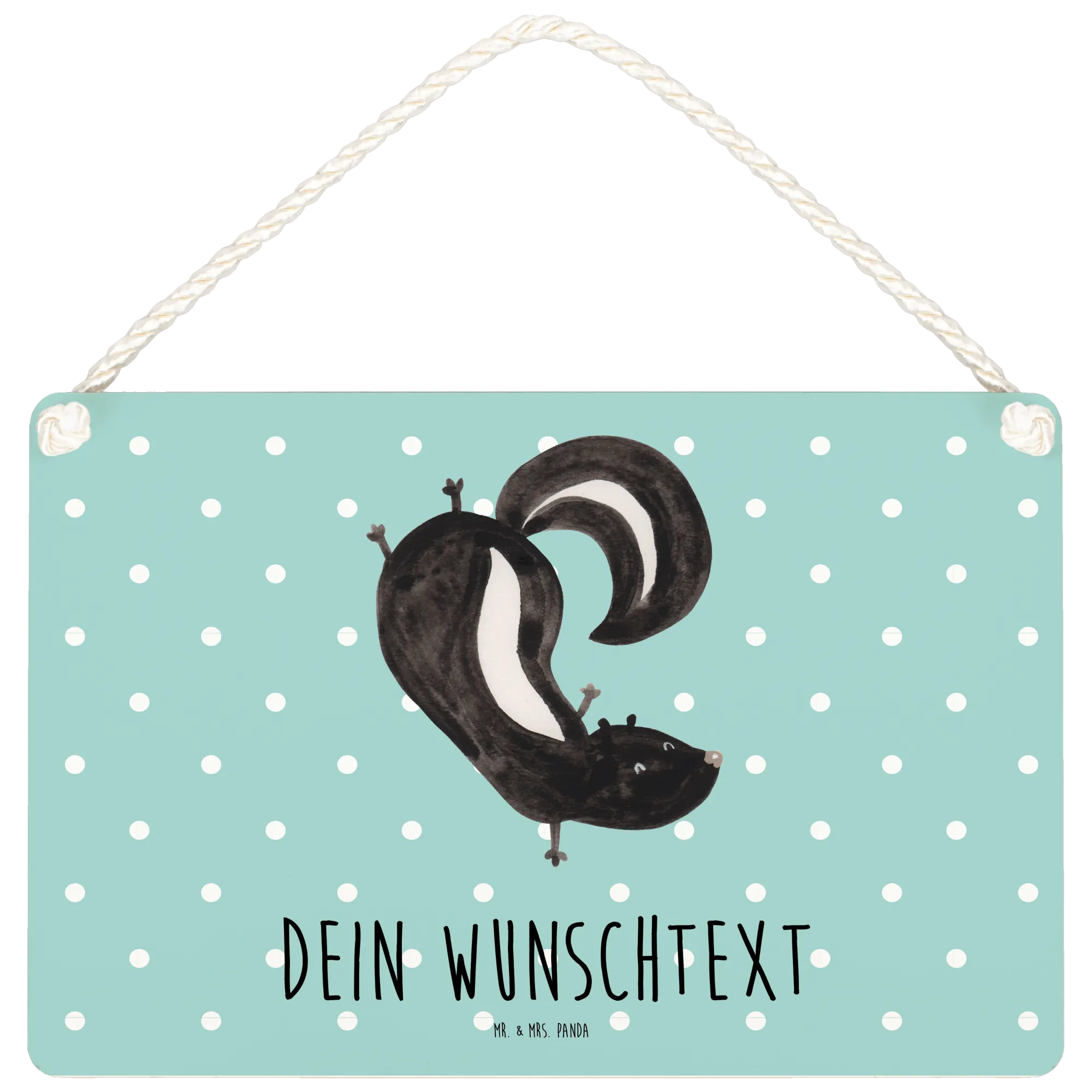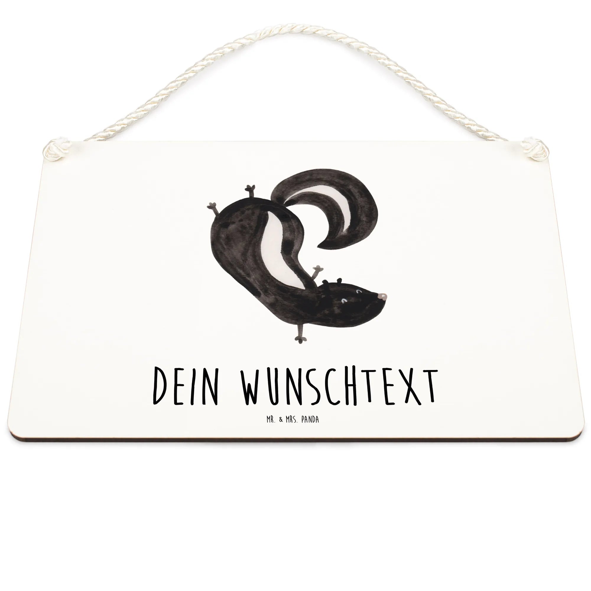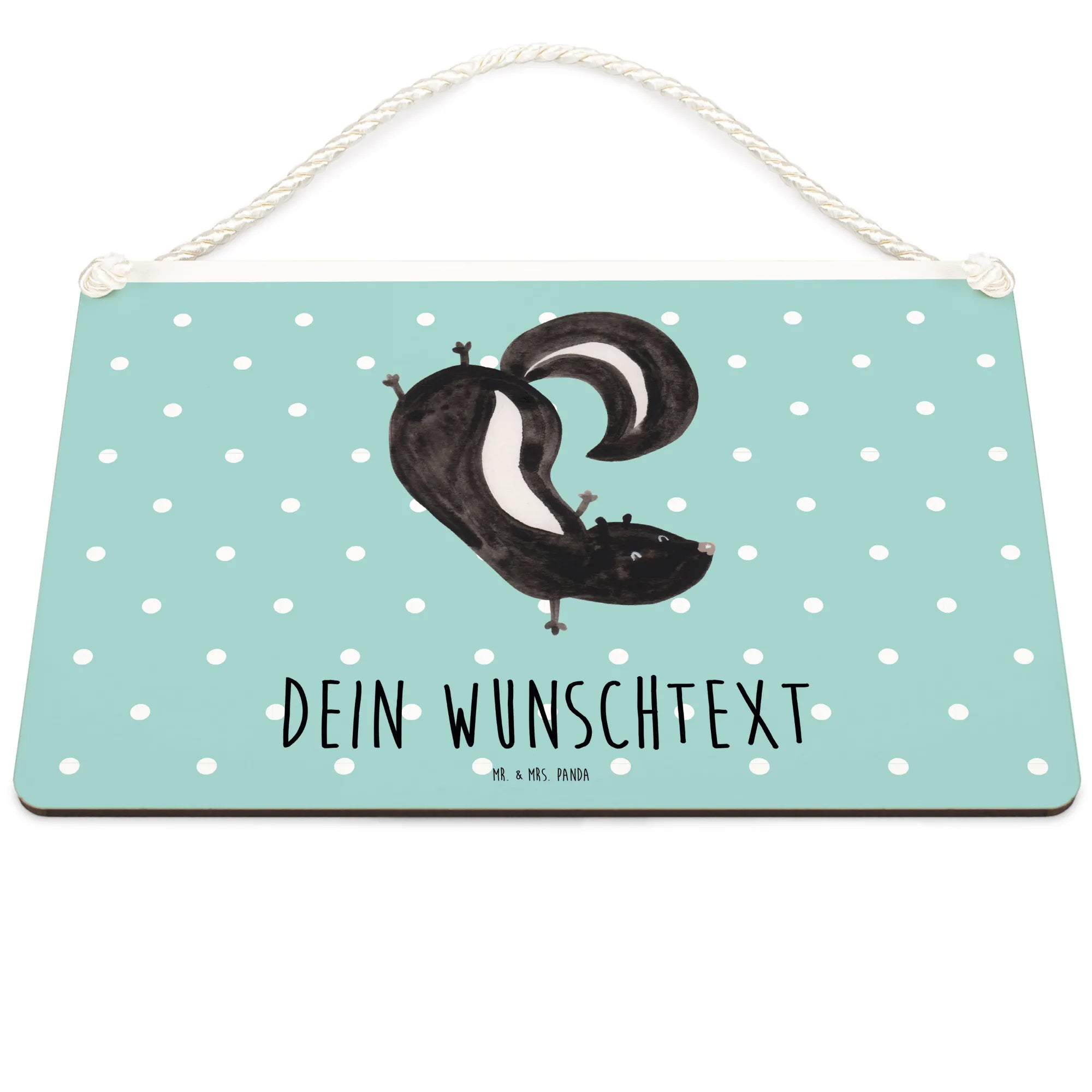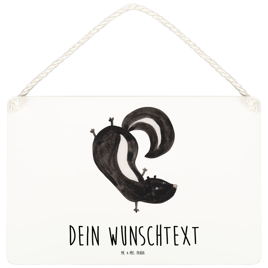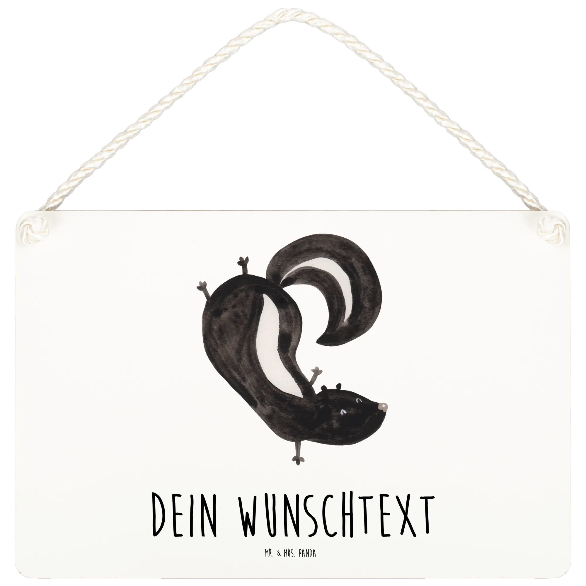 Das personalisierte Deko Schild mit dem süßen Stinktier im Handstand von Mr. & Mrs. Panda ist die perfekte Dekoration für dein Zuhause oder als Geschenk für Freunde und Familie! Wenn du auf der Suche nach einer originellen Wanddeko oder einem herzerwärmenden Türschild bist, wirst du in diesem einzigartigen Stück das ideale Accessoire finden. Das Schild wird in liebevoller Handarbeit aus hochwertigem MDF gefertigt und besticht durch seine Langlebigkeit und die edle, dauerhafte Druckqualität.