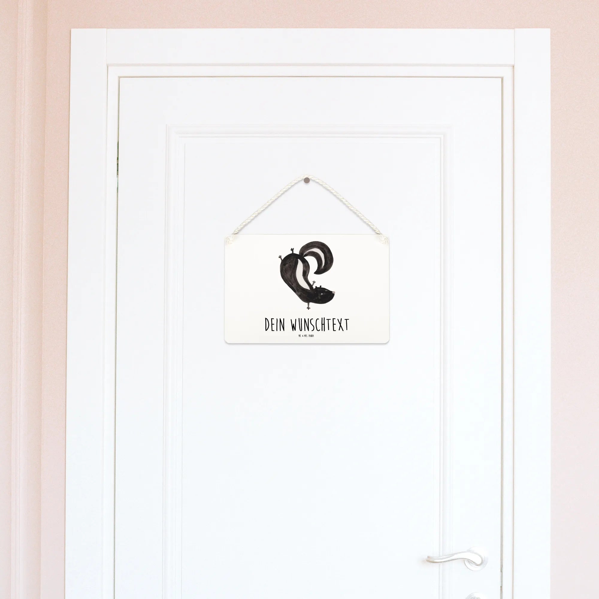 Personalisiere dein Schild ganz nach deinem Geschmack mit einem individuellen Namen oder Wunschtext und mache es so zu einem einzigartigen Geschenk! Ideal für Geburtstagsfeiern, Taufen oder als Erinnerungsgeschenk - dieses Deko Schild wird in jedem Fall zum Blickfang. Wenn Du Stinktiere liebst oder jemanden kennst, der sie einfach großartig findet, dann ist dieses Schild ein perfektes Präsent. Verleihe einem Raum mit einem persönlichen und charmanten Akzent einen neuen Look. Erlebe die lebensfrohe Botschaft der Stinktier-Kollektion, die uns daran erinnert, dass das Leben ein riesiger Spielplatz ist.