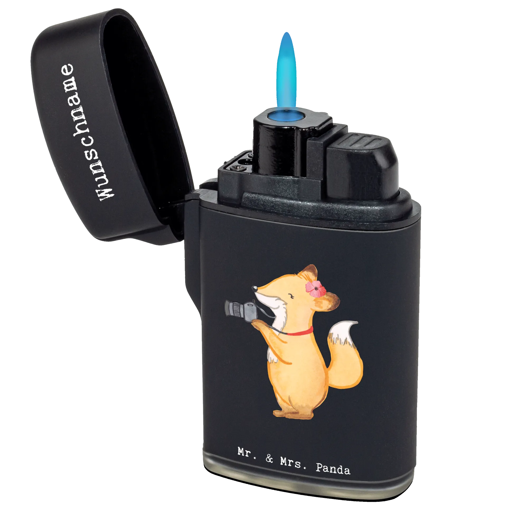 Egal, ob für eine Hochzeitsfotografin, eine Hobbyfotografin oder einen Fotoreporter – dieses Feuerzeug ist eine liebevolle Geste. Mit einem süßen Design, das einen weiblichen Fuchs mit Kamera zeigt, und dem besonderen Spruch "Du bist nur ein halber Mensch, wenn du keine Fotografin bist", wird es zum idealen Begleiter für den täglichen Einsatz.