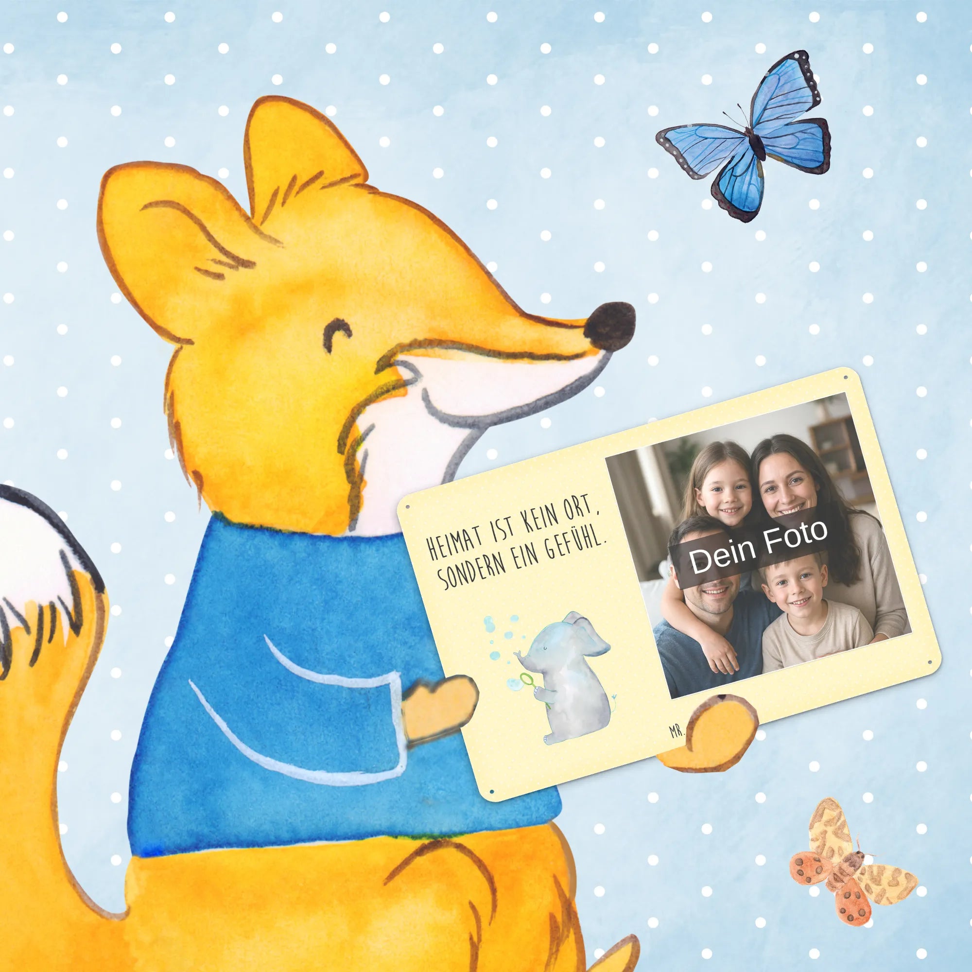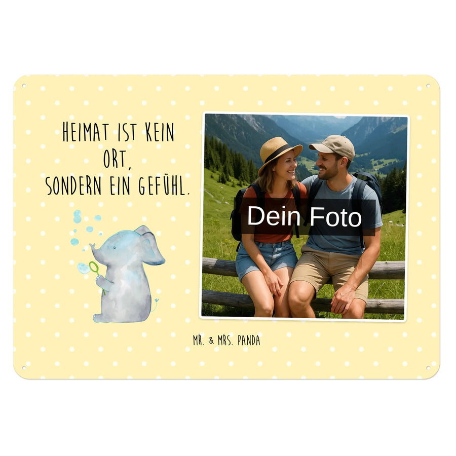 Gestalte dein persönliches Blechschild: Lade dein Foto hoch und kreiere ein einzigartiges Geschenk mit Mr. & Mrs. Panda – schnell gefertigt, liebevoll verpackt.