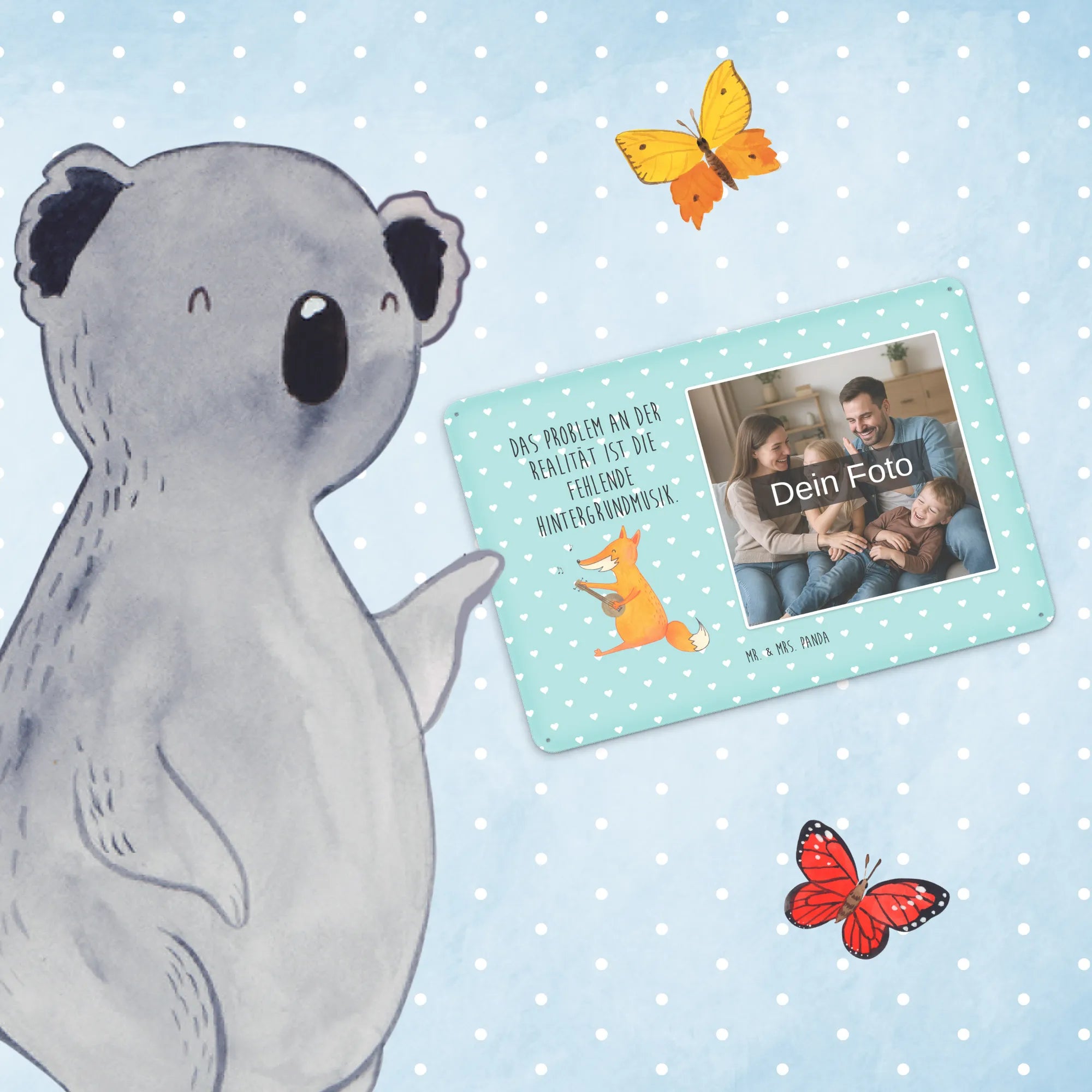 Jetzt personalisieren: Gestalte dein individuelles Foto Blechschild von Mr. & Mrs. Panda und verschenke Freude — einfach Foto hochladen & bestellen!