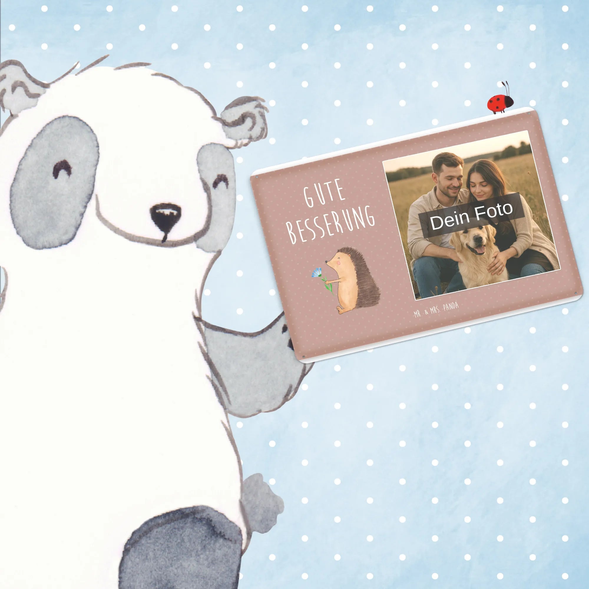 Gestalte dein persönliches Blechschild von Mr. & Mrs. Panda – verschenke Erinnerungen mit Stil!