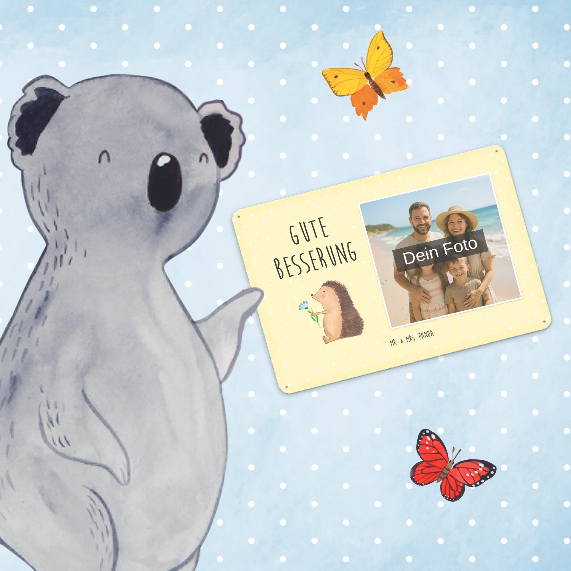 Mach es persönlich: Lade dein Foto hoch und gestalte jetzt dein Foto-Blechschild personalisiert mit Mr. & Mrs. Panda – schnell, einfach und liebevoll gestaltet.
