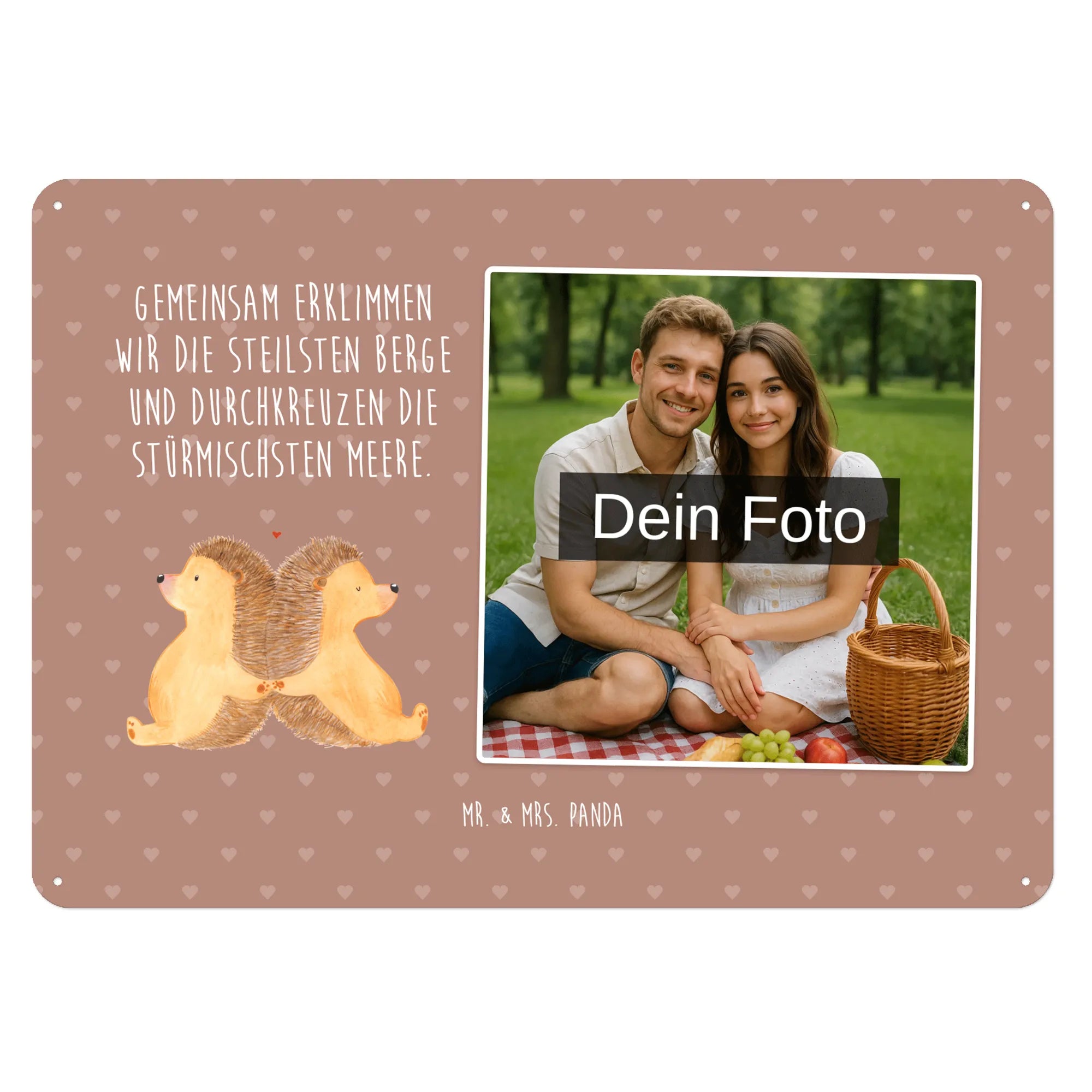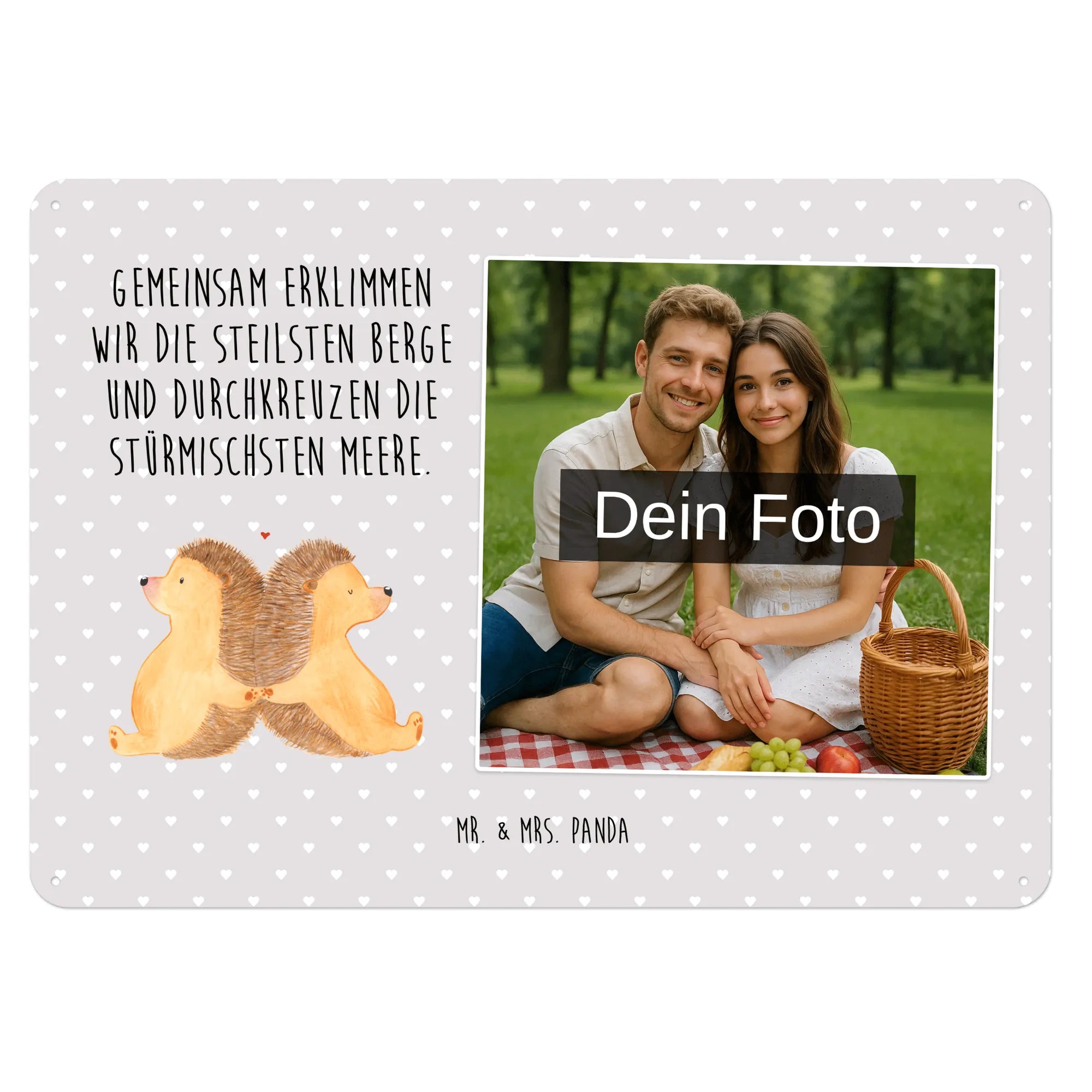 Personalisiertes Foto Blechschild Igel händchenhaltend - DIN A6 - Kreidetafel