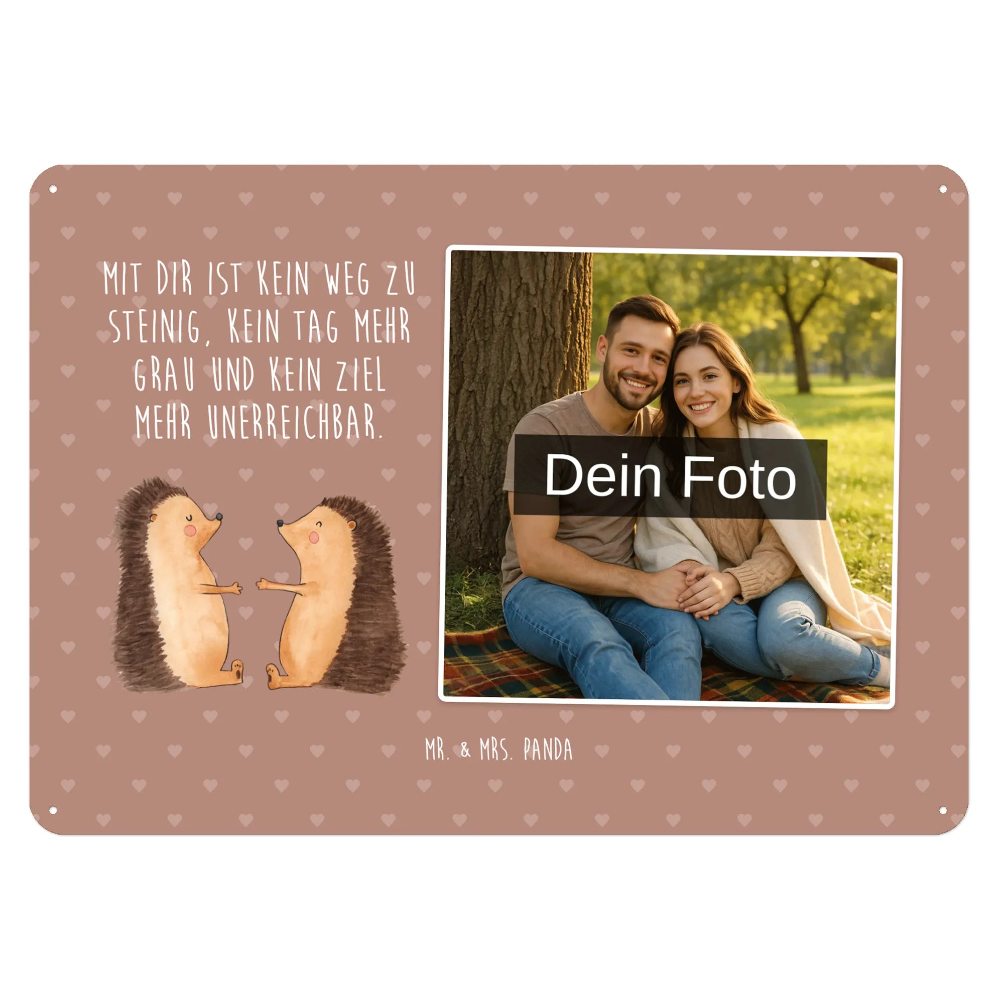 Personalisiertes Foto Blechschild „Igel Liebe“ – ein zärtlicher Liebesgruß von Mr. & Mrs. Panda, der mitten ins Herz trifft. Dieses Blechschild mit Wunschfoto verbindet ein handgemaltes Motiv mit deiner persönlichen Fotografie und dem liebevollen Spruch: Mit dir ist kein Weg zu steinig, kein Tag mehr grau und kein Ziel mehr unerreichbar.