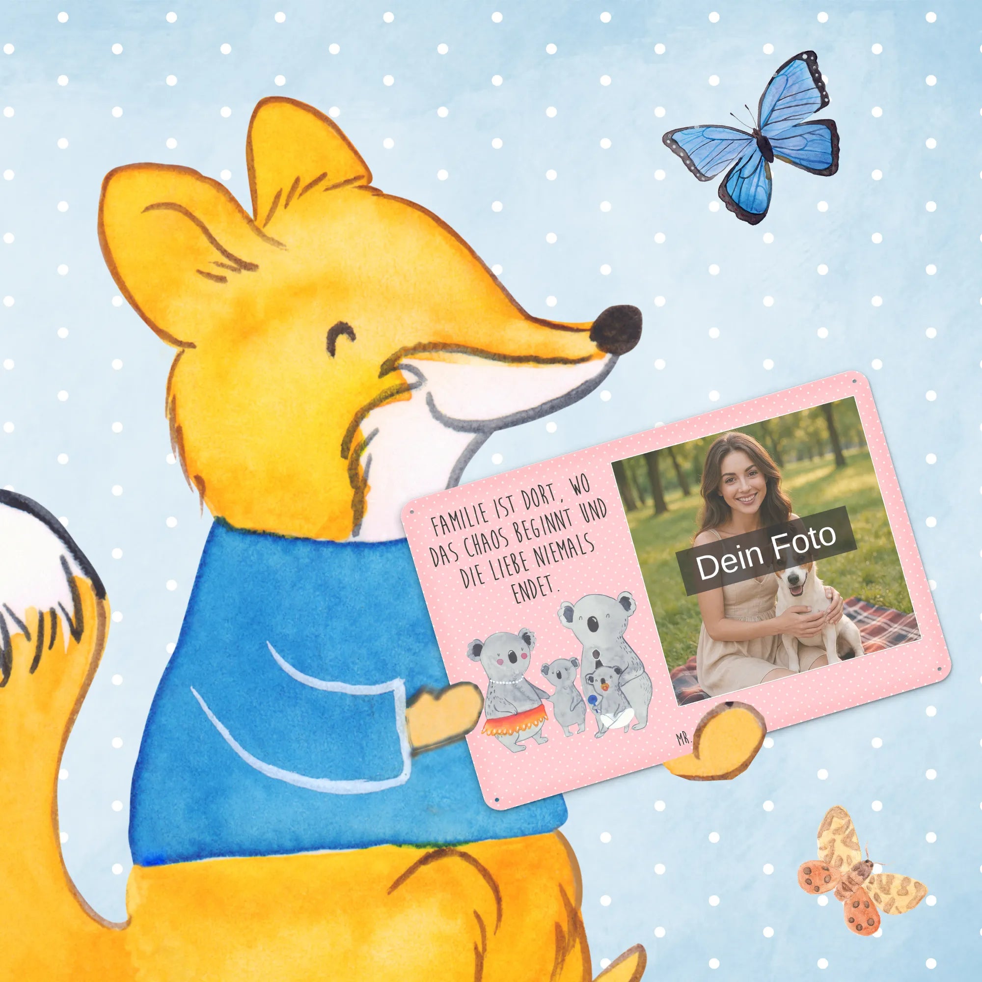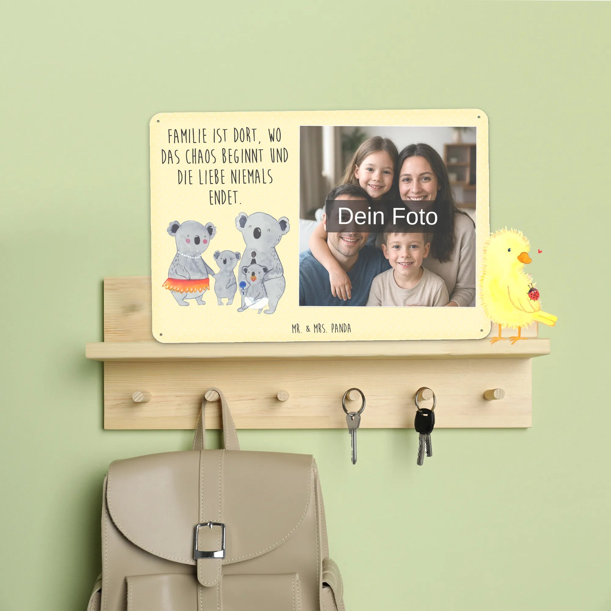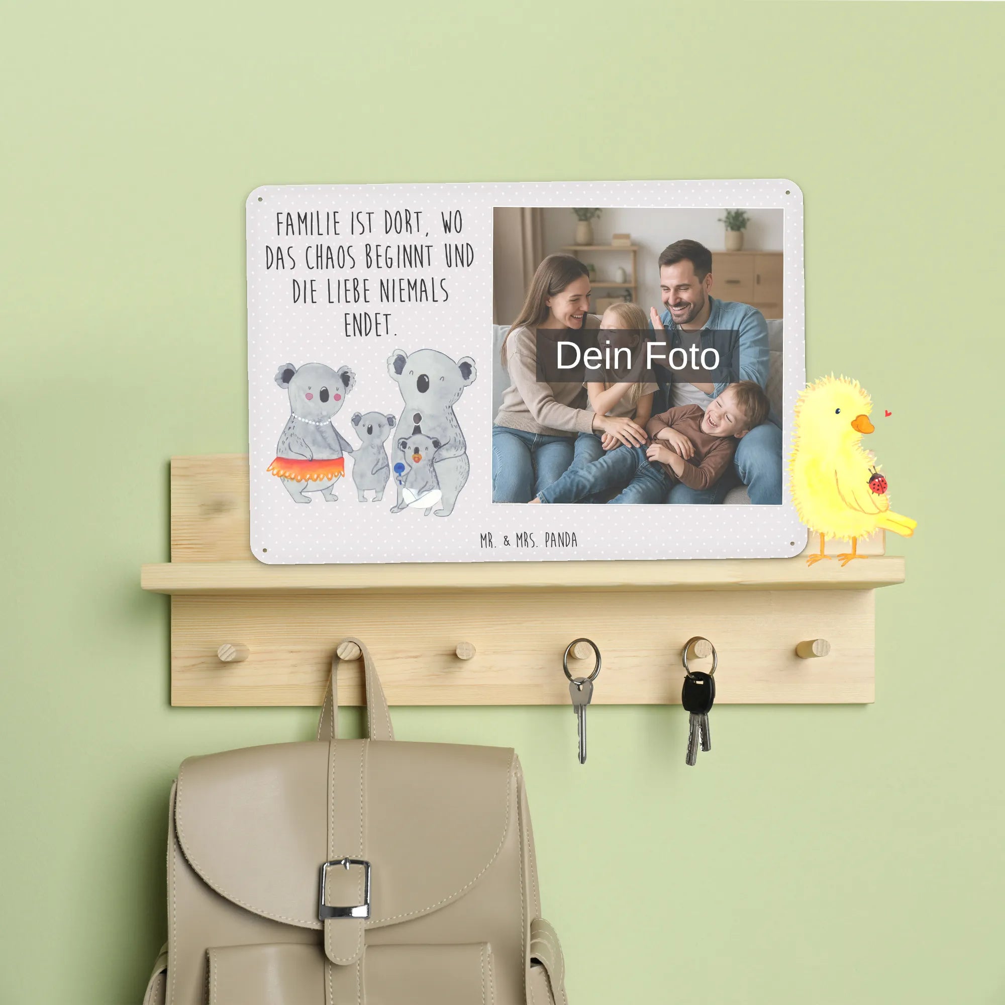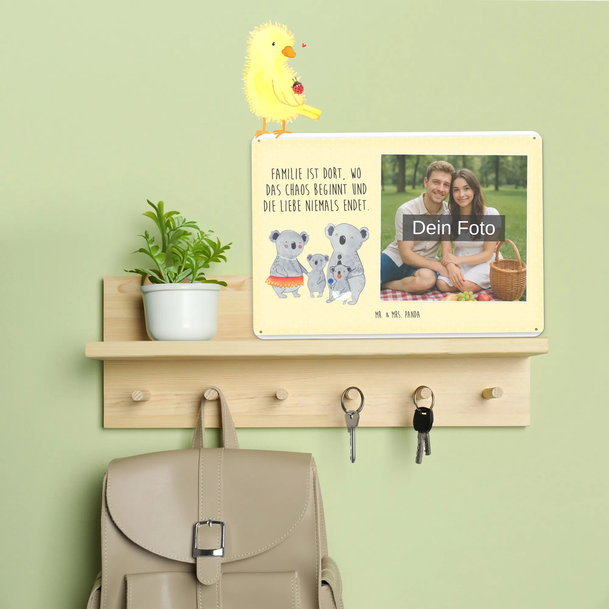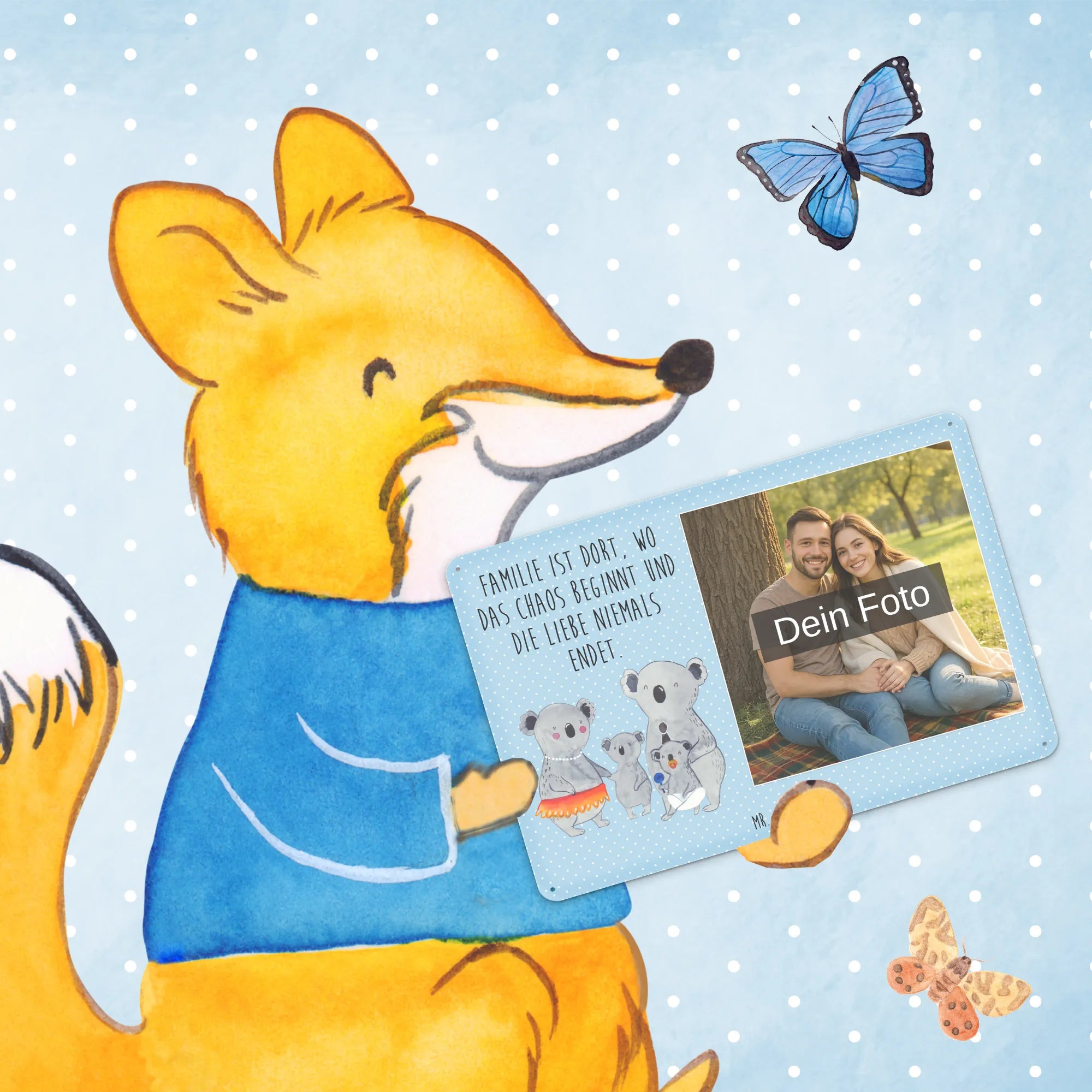 Blechschild mit eigenem Foto personalisiert – liebevoll gestaltet von Mr. & Mrs. Panda. Dieses edle Schild wird mit deinem Foto und unseren niedlichen Illustrationen bedruckt, sodass ein individuelles Dekostück entsteht. Achte unbedingt auf gute Bildqualität und geeigneten Bildausschnitt, damit das Motiv klar und harmonisch wirkt. Bitte nur eigene Bilder oder solche mit Nutzungsrecht hochladen. Gefertigt aus hochwertigem Stahlblech ohne Wölbung mit seidenmatter Oberfläche, bietet das Schild eine edle Optik. Maße: 70 mm x 297 mm x 210 mm. Der Druck ist langlebig und hochwertig verarbeitet. Für sicheren Halt gibt es vier Bohrungen, umgefalzte Kanten und abgerundete Ecken. Ideal für Innenräume, ob an der Tür, im Eingangsbereich oder an der Wohnzimmerwand. Pflegeleicht: einfach mit einem feuchten Tuch abwischen. In mehreren Größen erhältlich, so findest du garantiert die passende Variante. Verschenke Erinnerungen oder gestalte dein Zuhause persönlich — mit dem Blechschild mit eigenem Foto personalisiert von Mr. & Mrs. Panda wird jeder Raum ein Stückchen liebevoller.