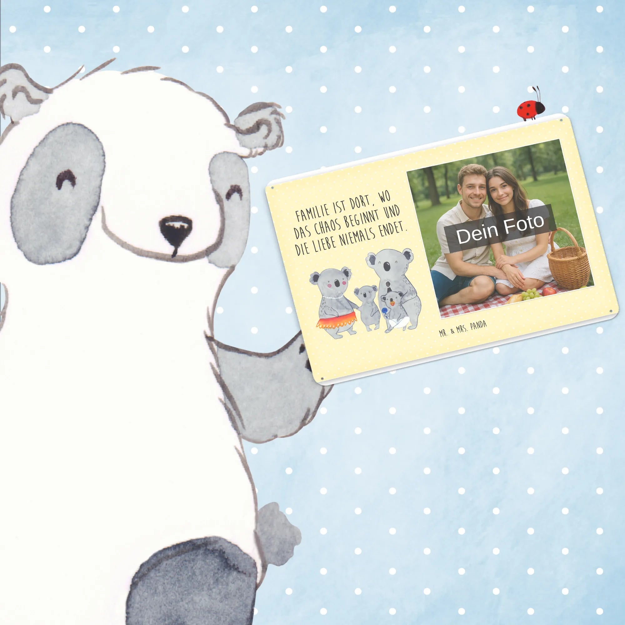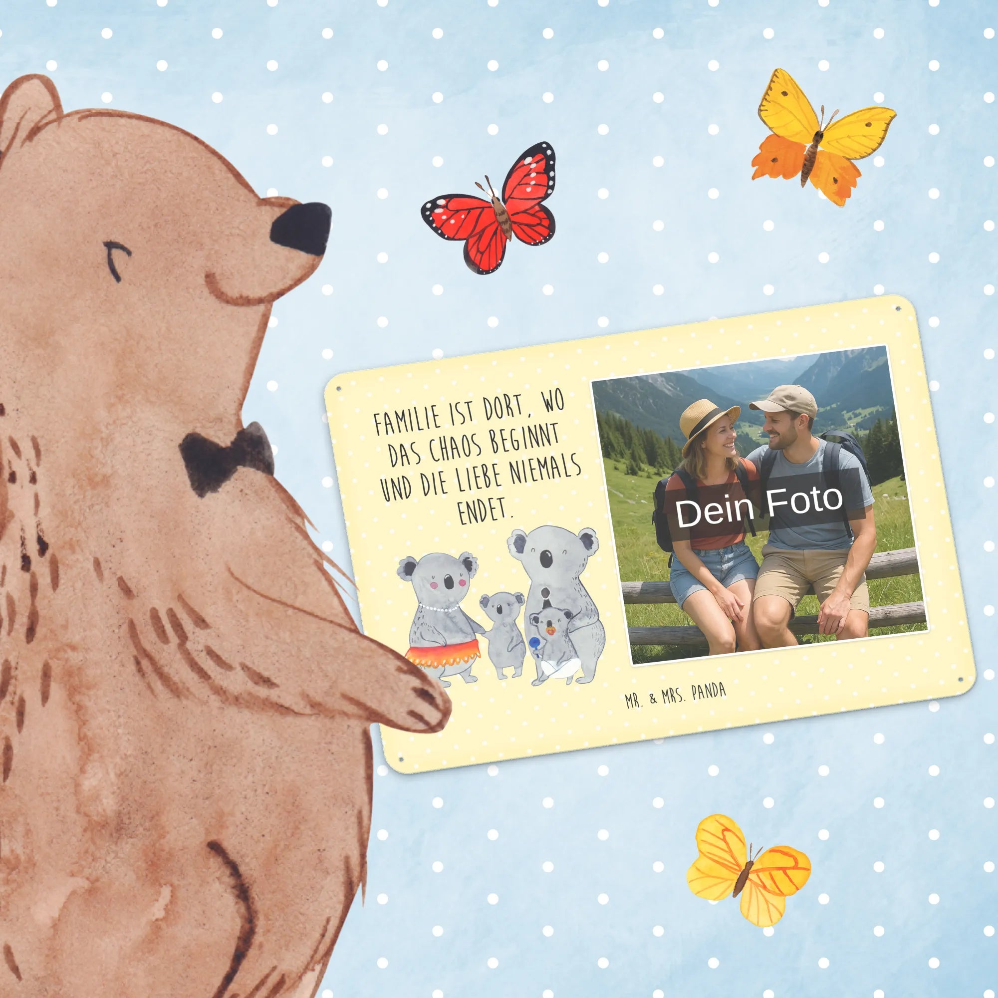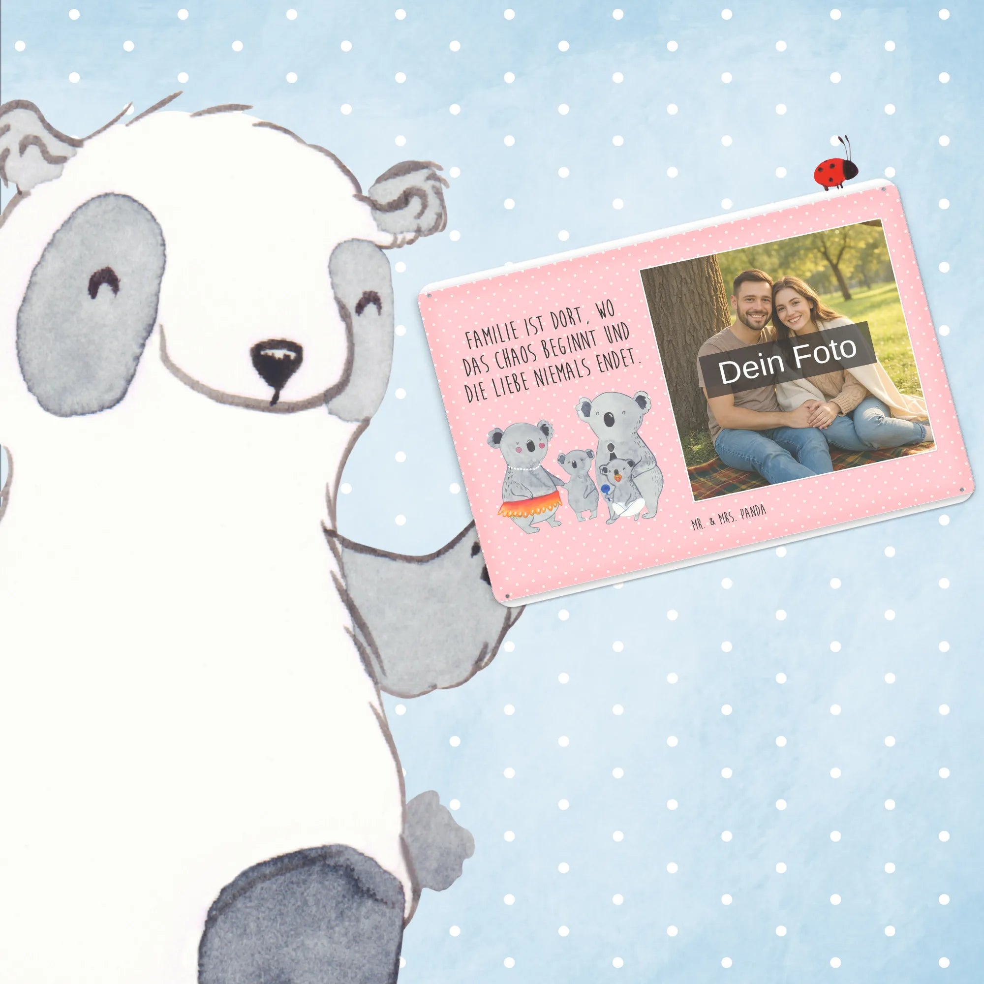 Schenke Persönlichkeit: Erstelle jetzt dein personalisierbares Blechschild Foto mit Mr. & Mrs. Panda – Foto hochladen, Text hinzufügen, bestellen und Freude verschenken.