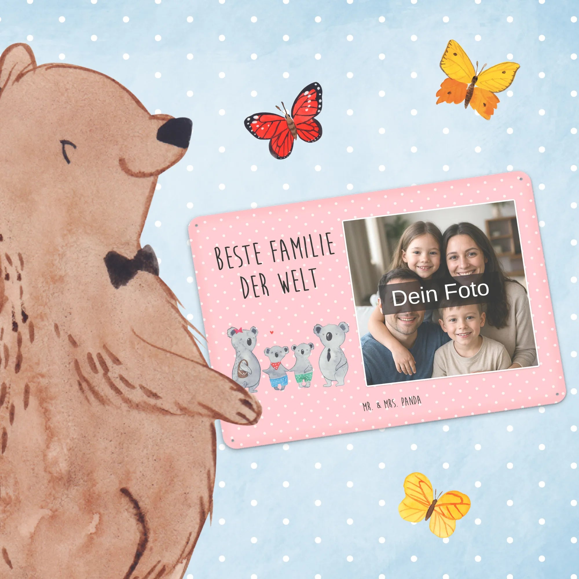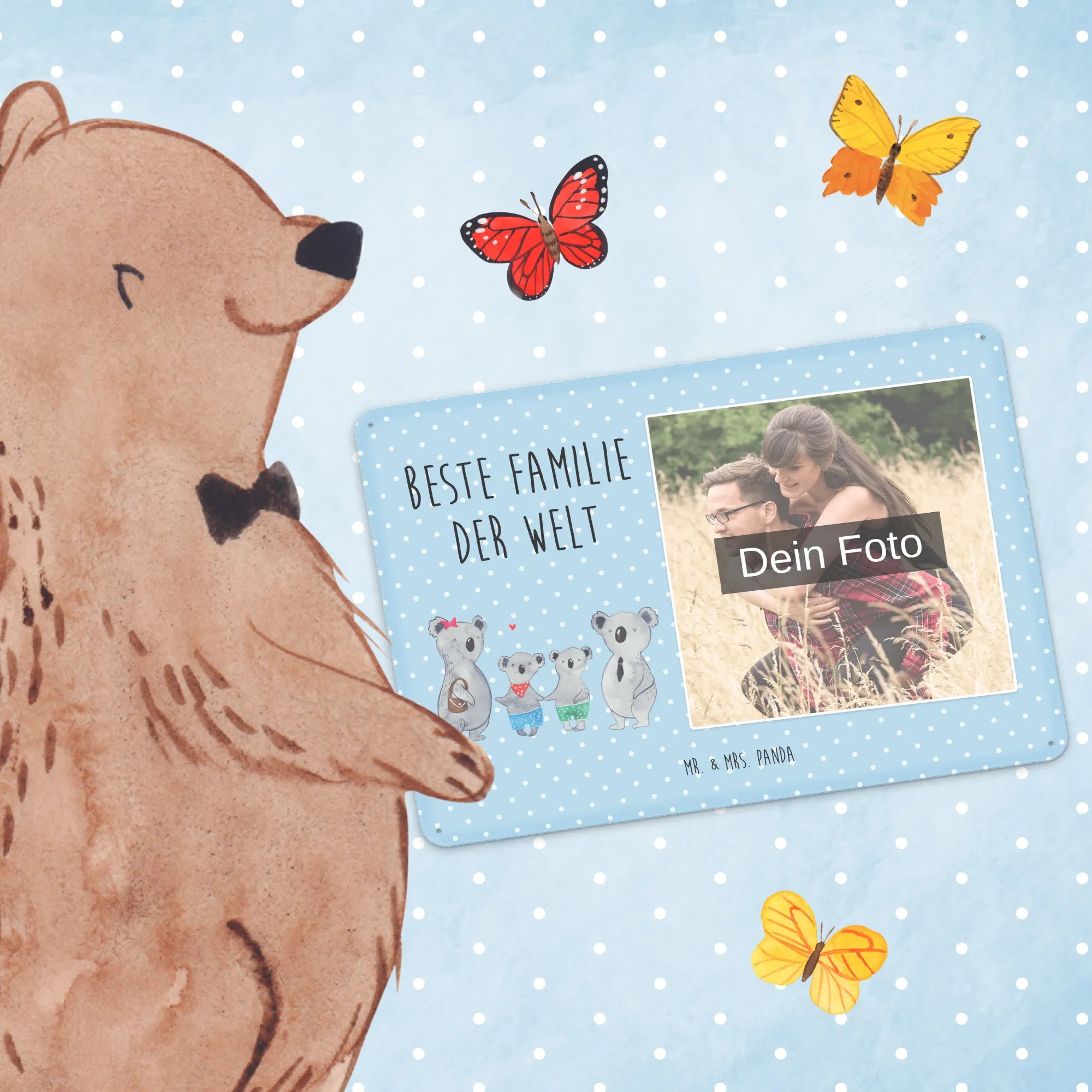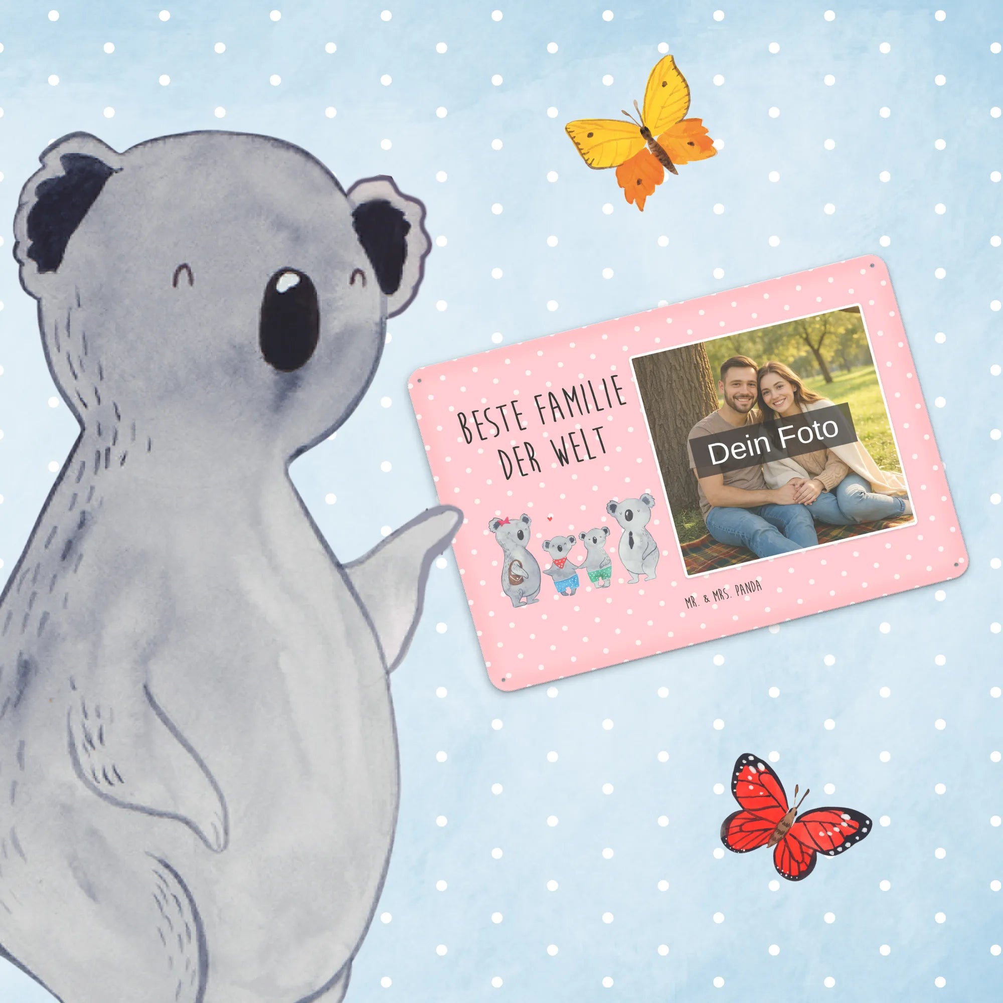 Mr. & Mrs. Panda – Personalisiertes Foto-Blechschild „Koala Familie zwei“