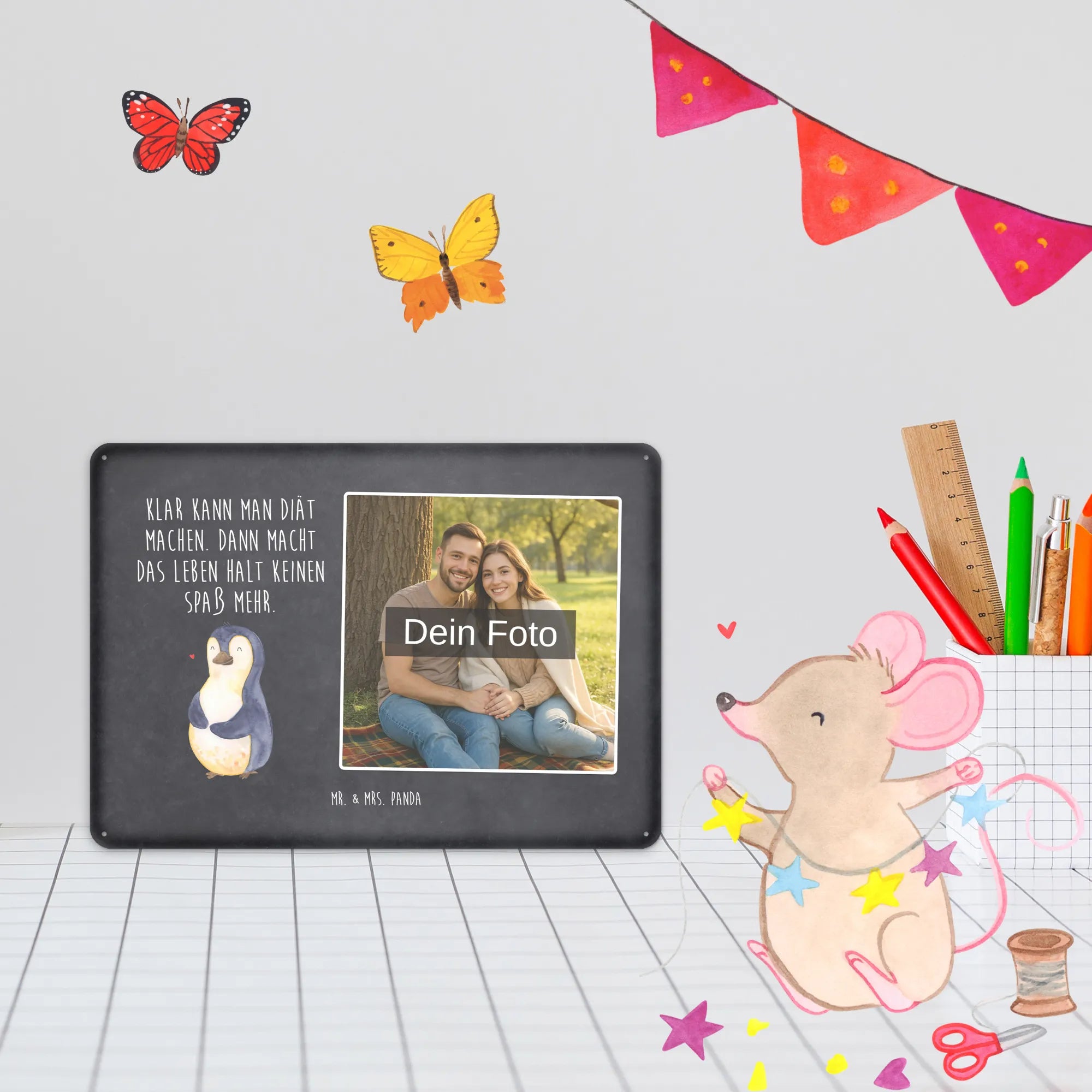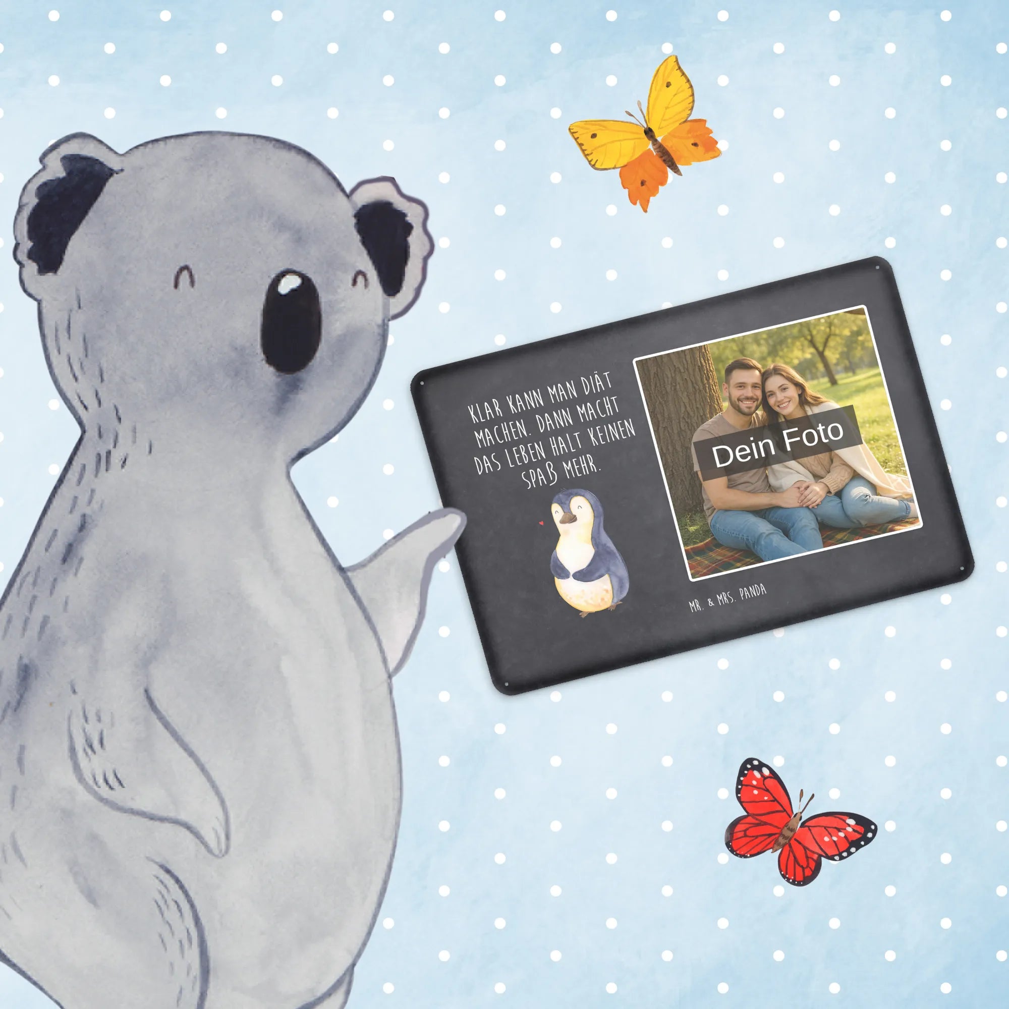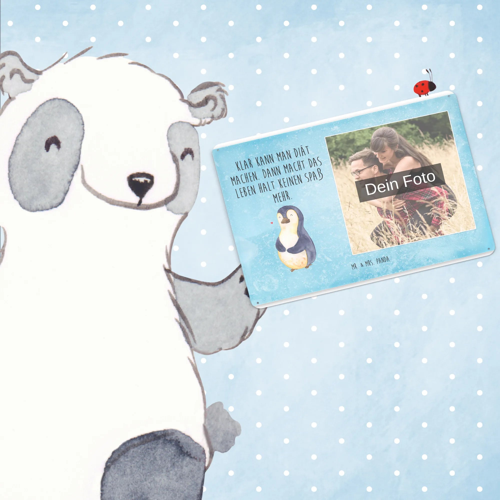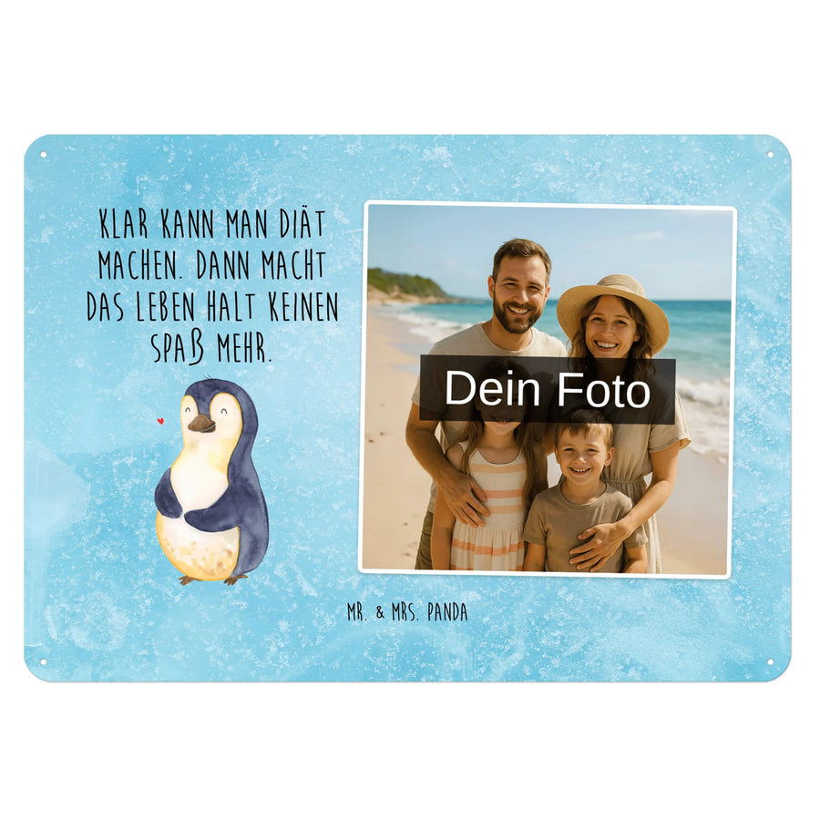 Personalisiertes Foto Blechschild Pinguin Diät - DIN A6 - Eisblau