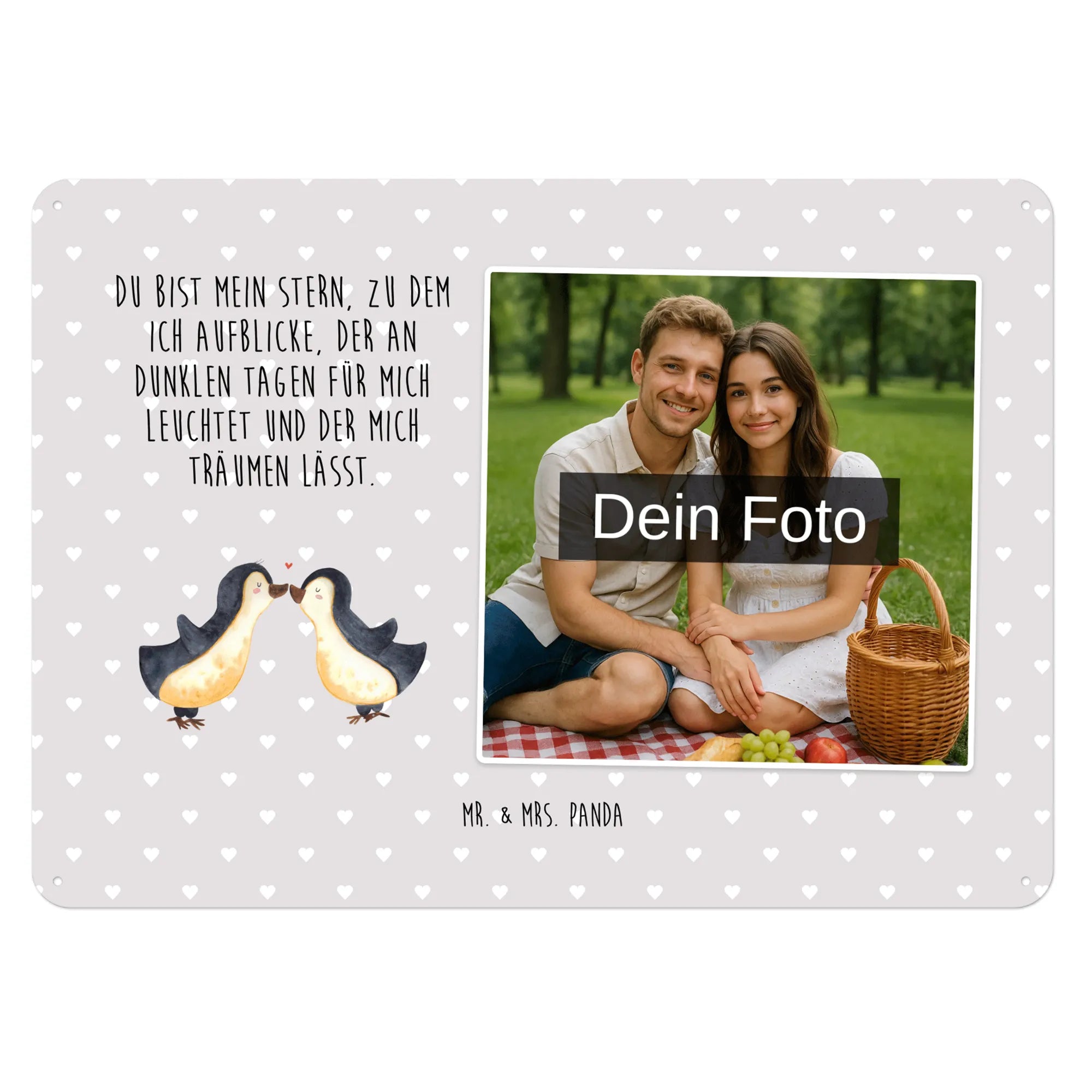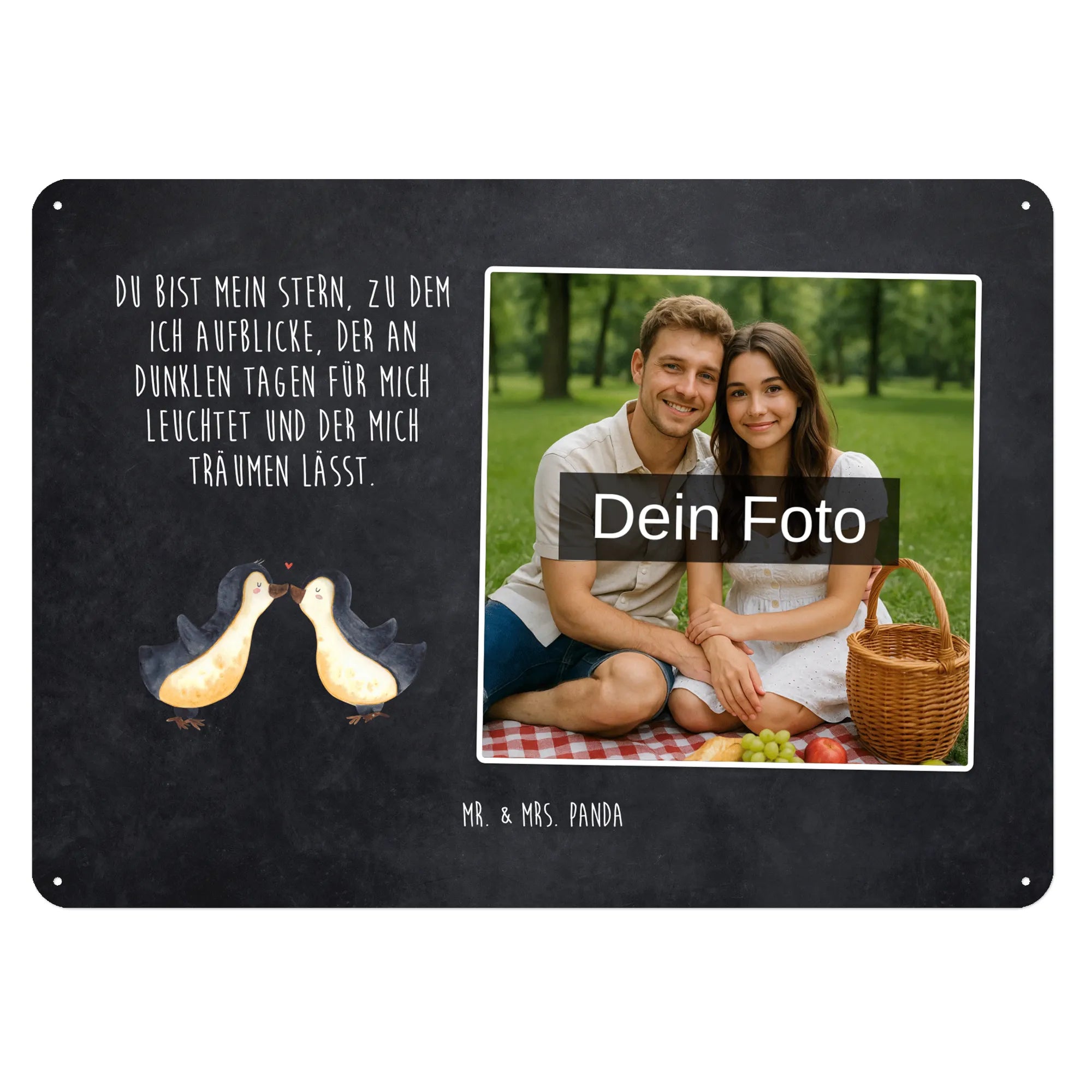 Personalisiertes Foto Blechschild Pinguin Liebe - DIN A6 - Kreidetafel