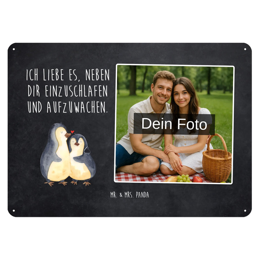 Personalisiertes Foto Blechschild Pinguine Einschlafen - DIN A6 - Kreidetafel