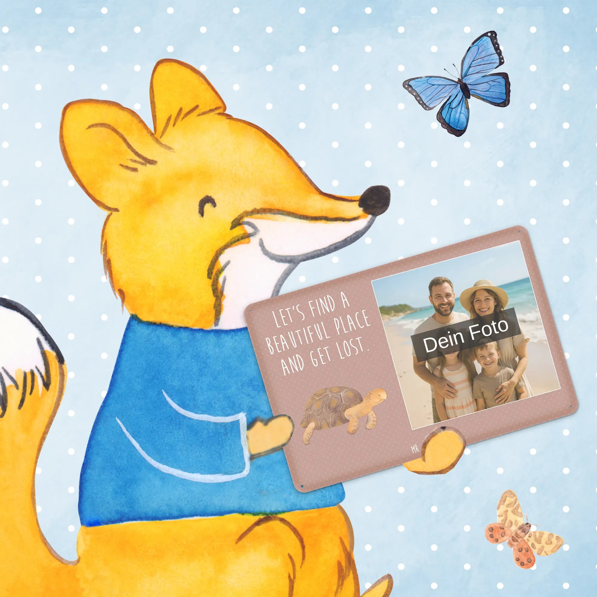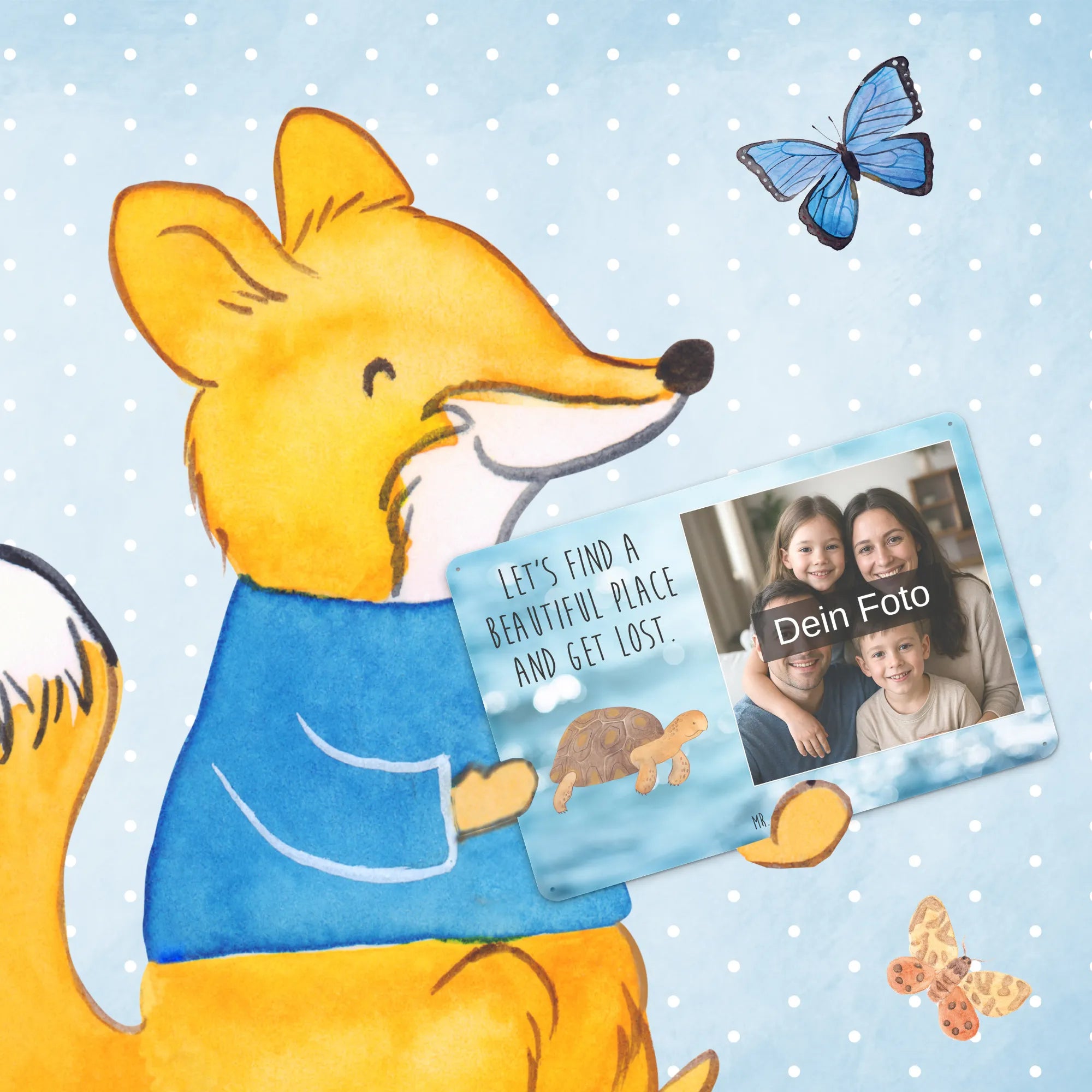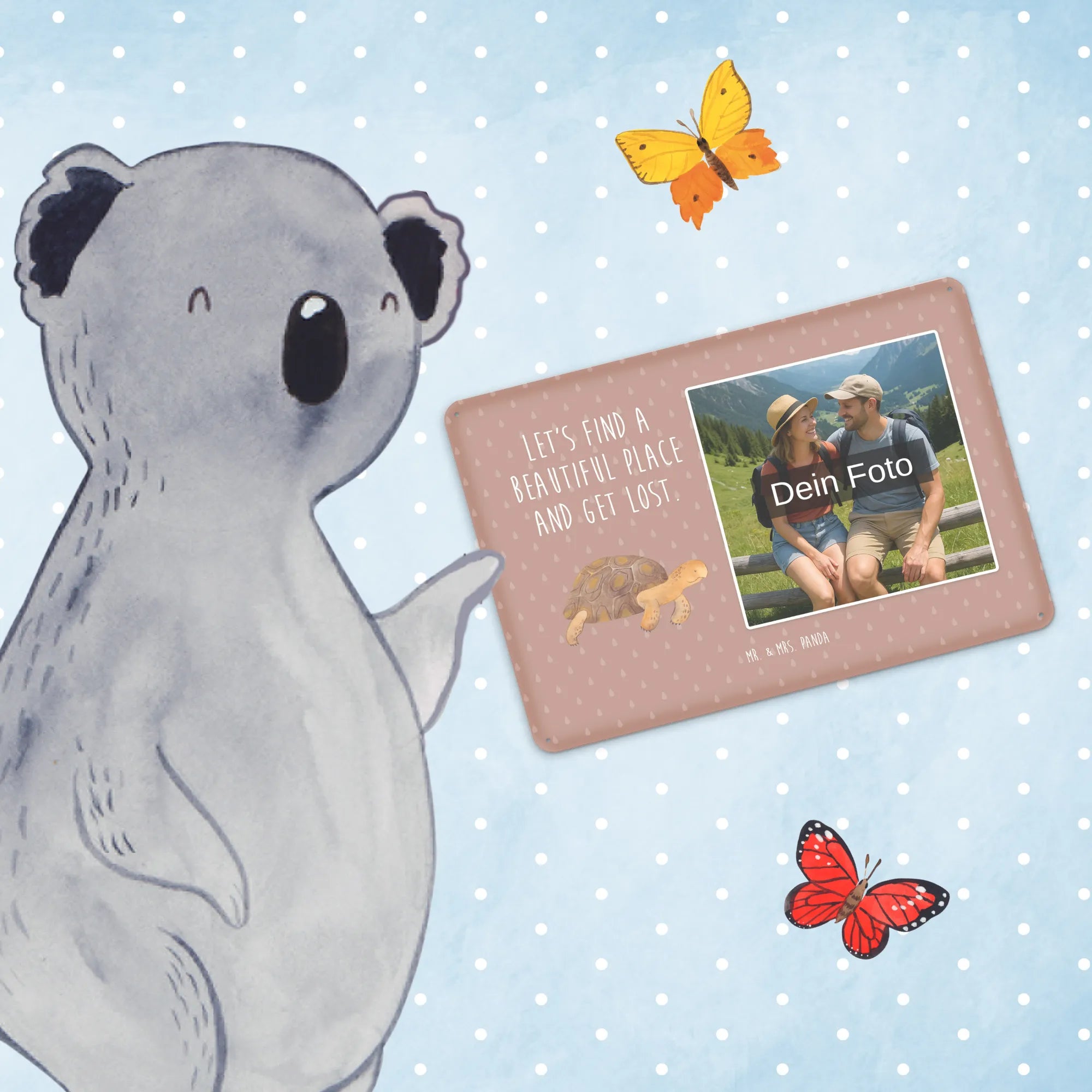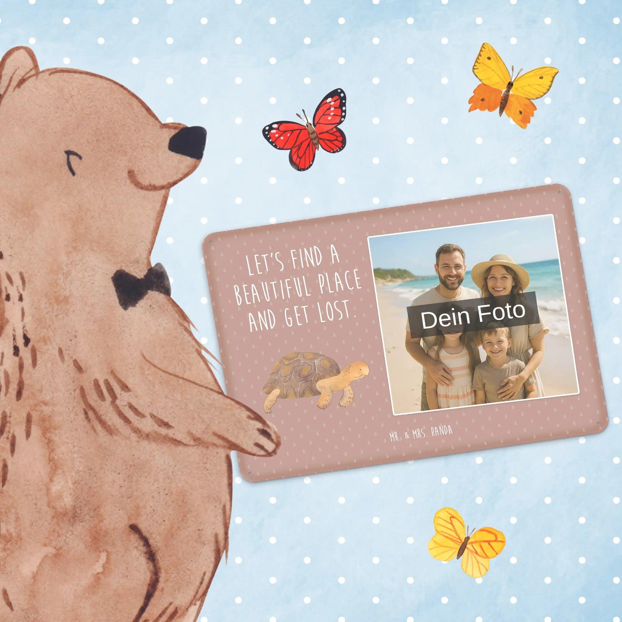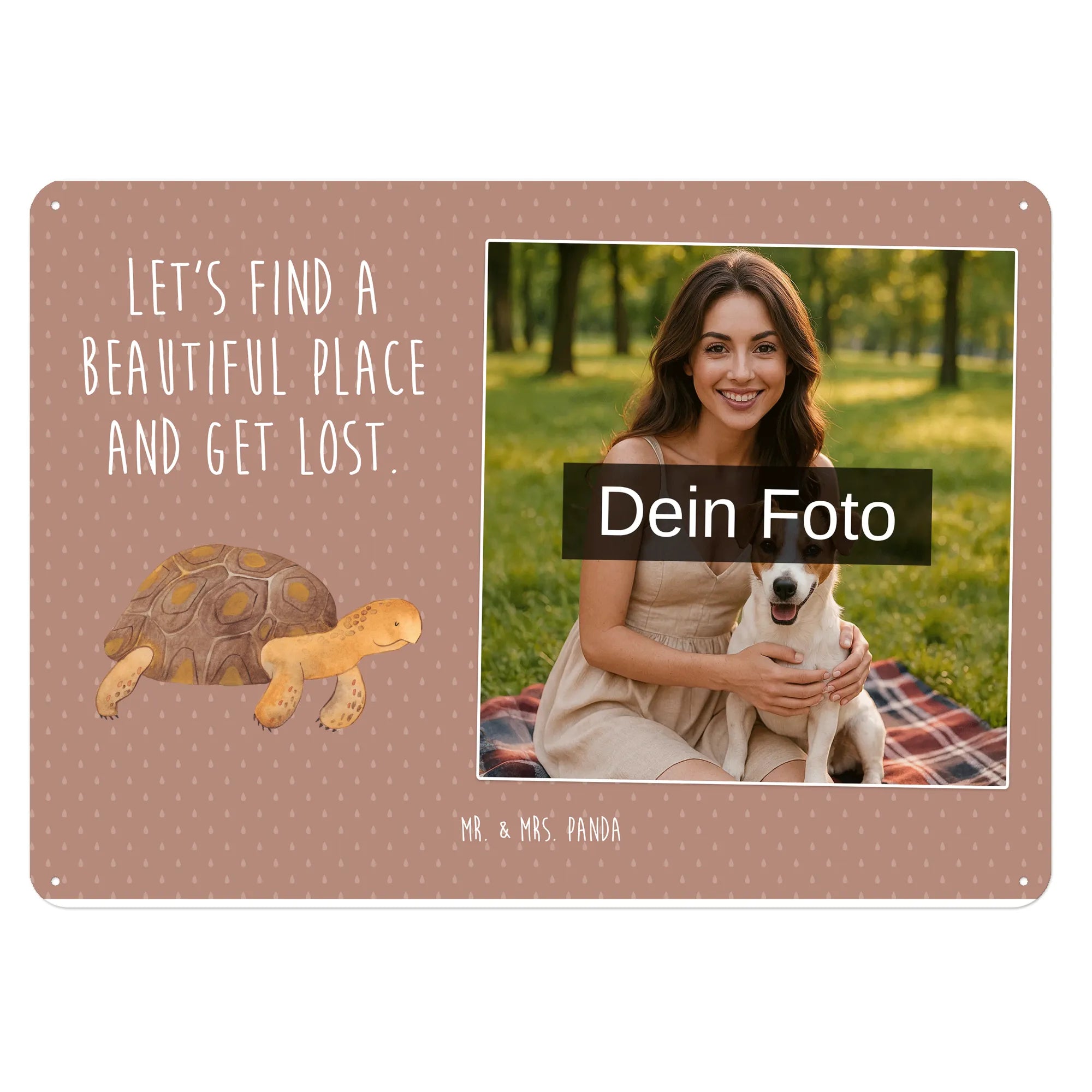 Personalisiertes Foto Blechschild Schildkröte Marschieren - DIN A6 - Braun Pastell