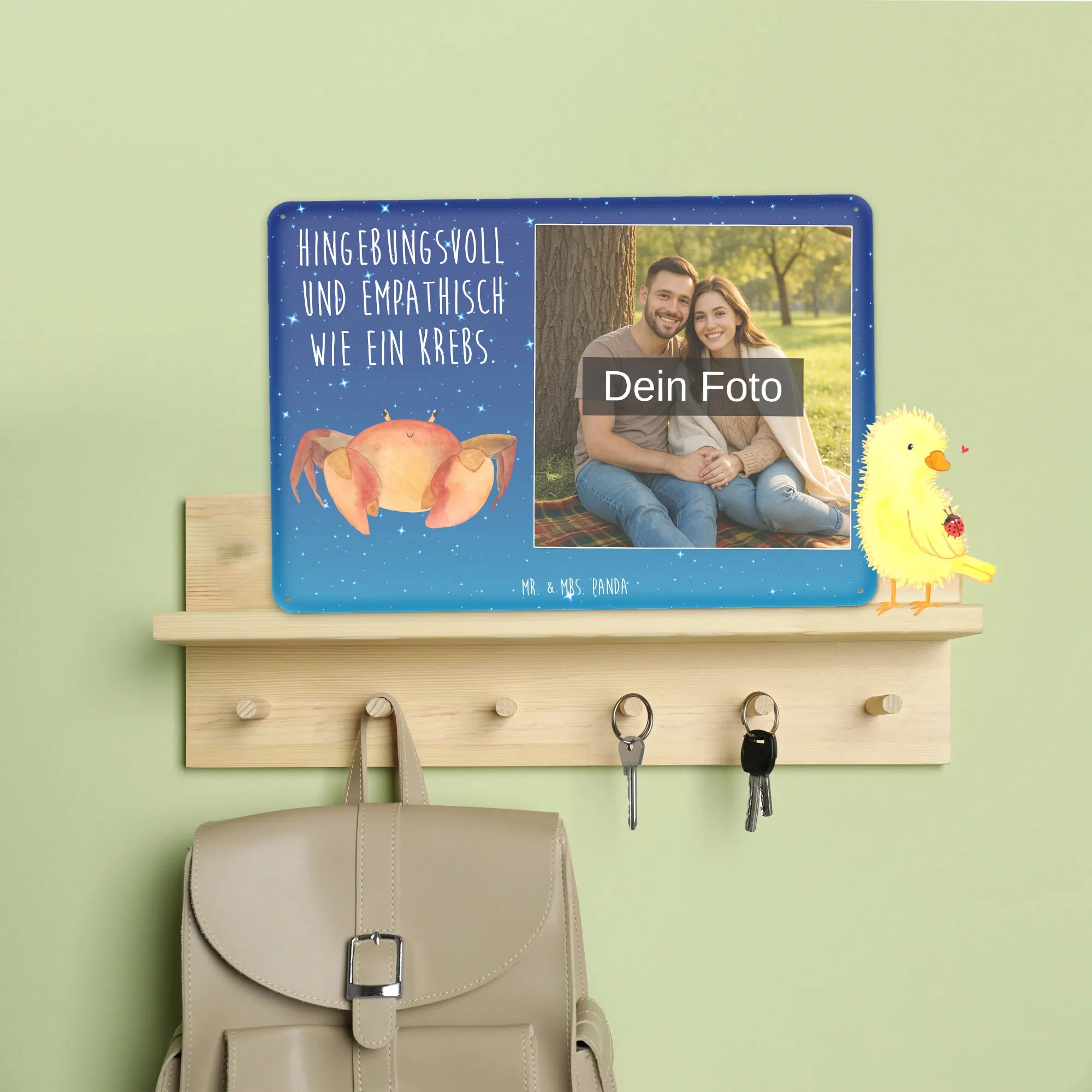 Ein bezauberndes Blechschild mit Foto personalisiert von Mr. & Mrs. Panda – das ideale Geschenk für besondere Anlässe oder als süße Türdekoration. Das Schild ist edel und seidenmatt bedruckt, versehen mit charmanten Sprüchen und Panda-Motiven, und wird mit deinem Wunschfoto individuell gestaltet. Damit das Ergebnis perfekt wird, achte auf eine hohe Bildauflösung, einen passenden Ausschnitt und die Bildrechte. Maße: 70 mm x 148 mm x 105 mm. Das Material ist hochwertiges Stahlblech ohne Wölbung, die Kanten sind umgefalzt und die Ecken abgerundet. Vier Bohrungen erleichtern die Montage an Tür oder Wand – optimal für den Innenbereich. Der Druck ist langlebig und wirkt sehr edel. Pflegehinweis: mit einem feuchten Tuch abwischbar. Besonderheit: erhältlich in mehreren Größen, so findest du garantiert die richtige Version. Dieses Blechschild mit Foto personalisiert bringt liebevolle Atmosphäre in jeden Raum und ist ein wunderbarer Blickfang.