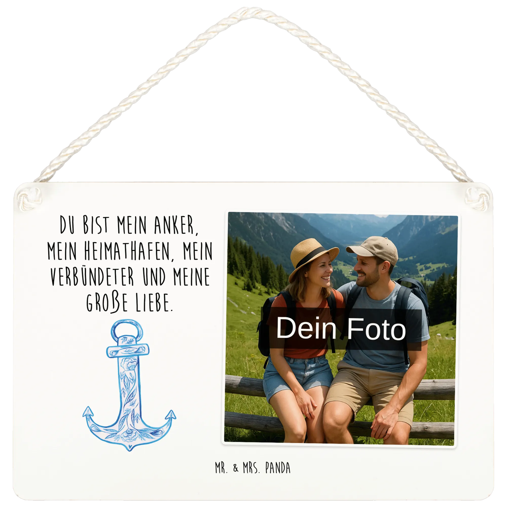 Personalisiertes Foto Deko Schild Anker Blau – Mr. & Mrs. Panda