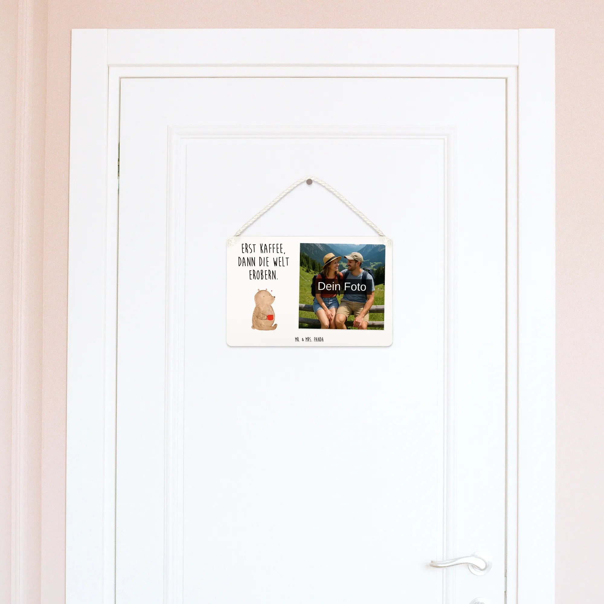 Personalisiertes Foto Deko Schild Bär Kaffee - DIN A5