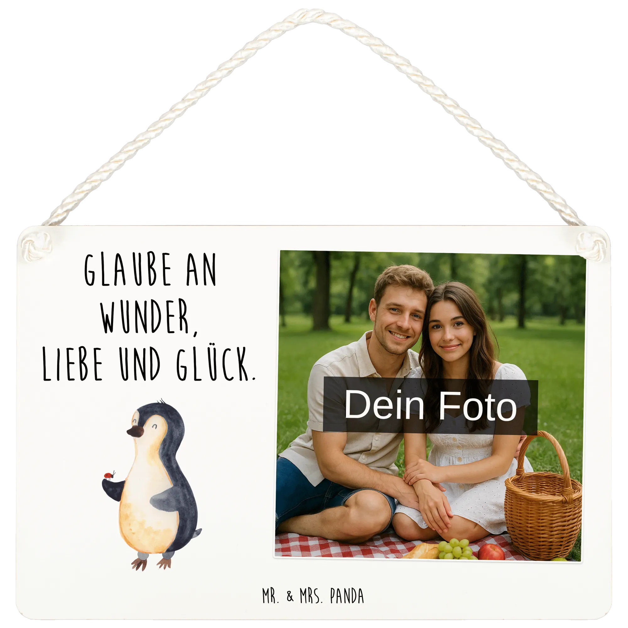 Personalisiertes Foto Deko Schild Pinguin Marienkäfer - DIN A5
