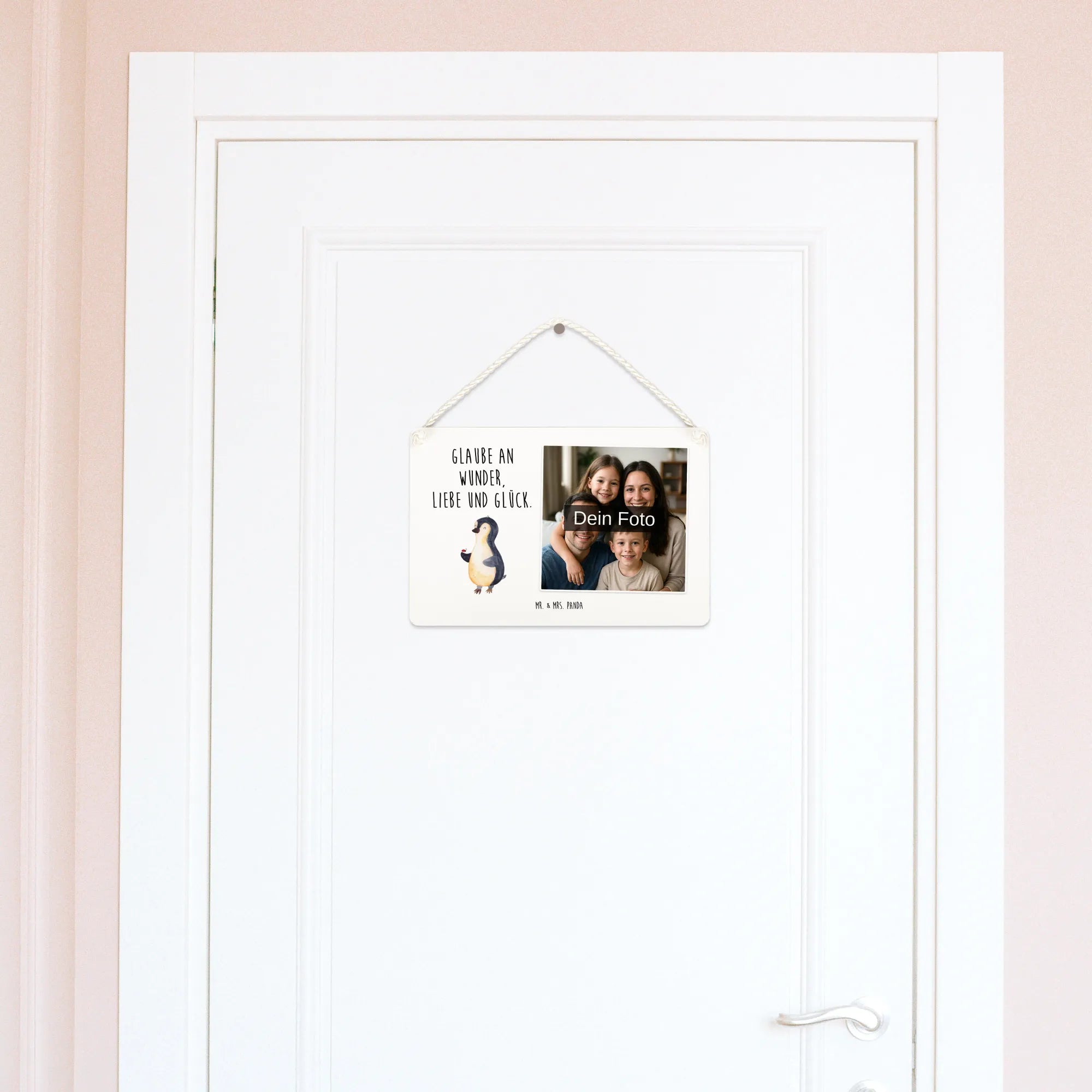 Mach dein Zuhause einzigartig mit unserem personalisierten Foto Deko Schild von Mr. & Mrs. Panda! Die Maße von 148 mm x 105 mm sorgen dafür, dass es sich überall harmonisch einfügt. Du kannst es nach deinen Wünschen mit deinem Lieblingsfoto und tollen Sprüchen von Mr. & Mrs. Panda gestalten. Sorge dafür, dass dein Bild in bester Qualität hochgeladen wird, damit das Endprodukt wirklich beeindruckt. Das langlebige Material bewahrt die Farben und sorgt für einen Blickfang an deiner Tür oder Wand. Ob als individuelles Geschenk oder einfach für die eigene Wohnung, dieses Schild ist immer eine gute Idee! Zudem macht die Kordel das Anbringen zum Kinderspiel und verleiht dem Schild einen stilvollen Touch.