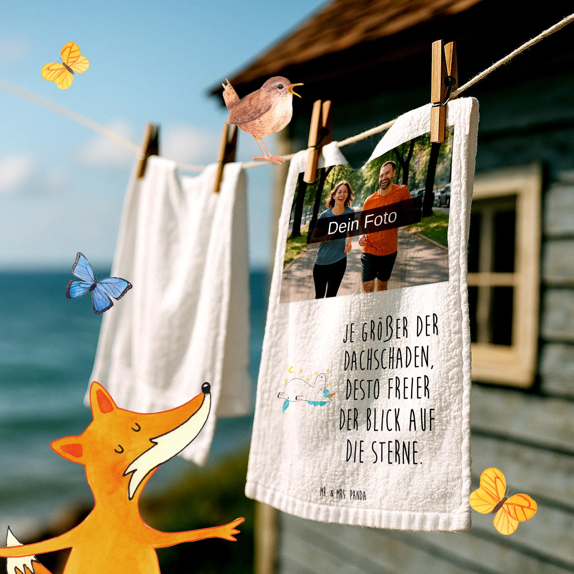 Verschönere dein Bad mit dem personalisierten Foto Gästehandtuch von Mr. & Mrs. Panda! Mit einer Größe von 300 mm x 500 mm ist es perfekt für jedes Gäste-WC geeignet. Hochwertig bedruckt mit fröhlichen Motiven und Sprüchen, bringt es gute Laune in dein Badezimmer. Lass deine Freunde durch dein ganz persönliches Wunschfoto staunen – achte nur darauf, dass das Bild eine hohe Auflösung hat! Das Handtuch fühlt sich super weich an, da es aus einer komfortablen Baumwollmischung besteht. Es ist nicht nur schick, sondern auch praktisch, denn es kann bei 30°C in der Maschine gewaschen werden. Mach dein Badezimmer einzigartig mit diesem tollen Handtuch, welches sich auch perfekt als Geschenk eignet!