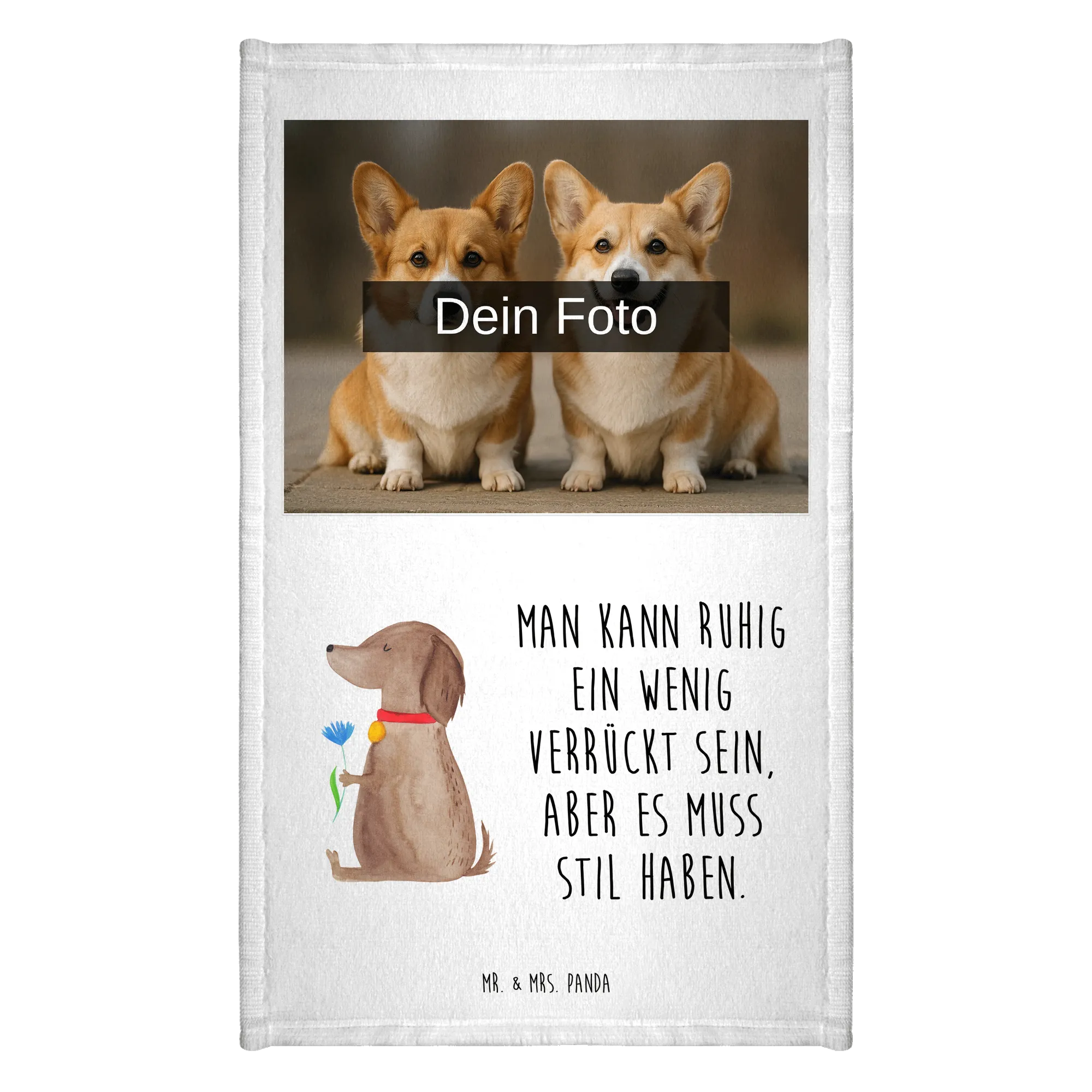 Personalisiertes Foto Gästehandtuch Hund Blume