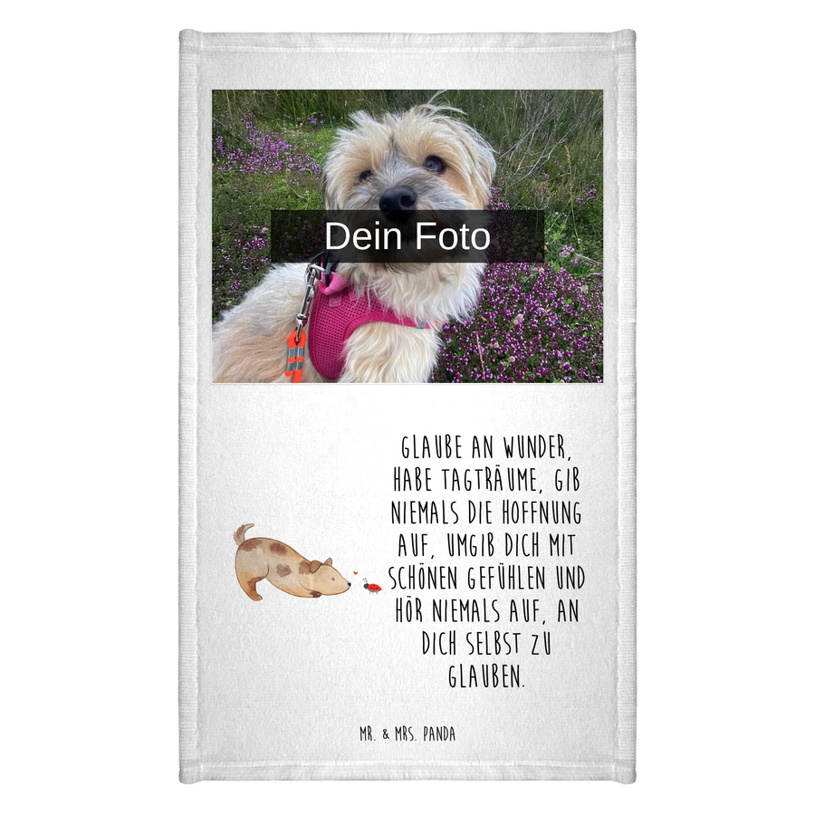 Personalisiertes Foto Gästehandtuch Hund Marienkäfer