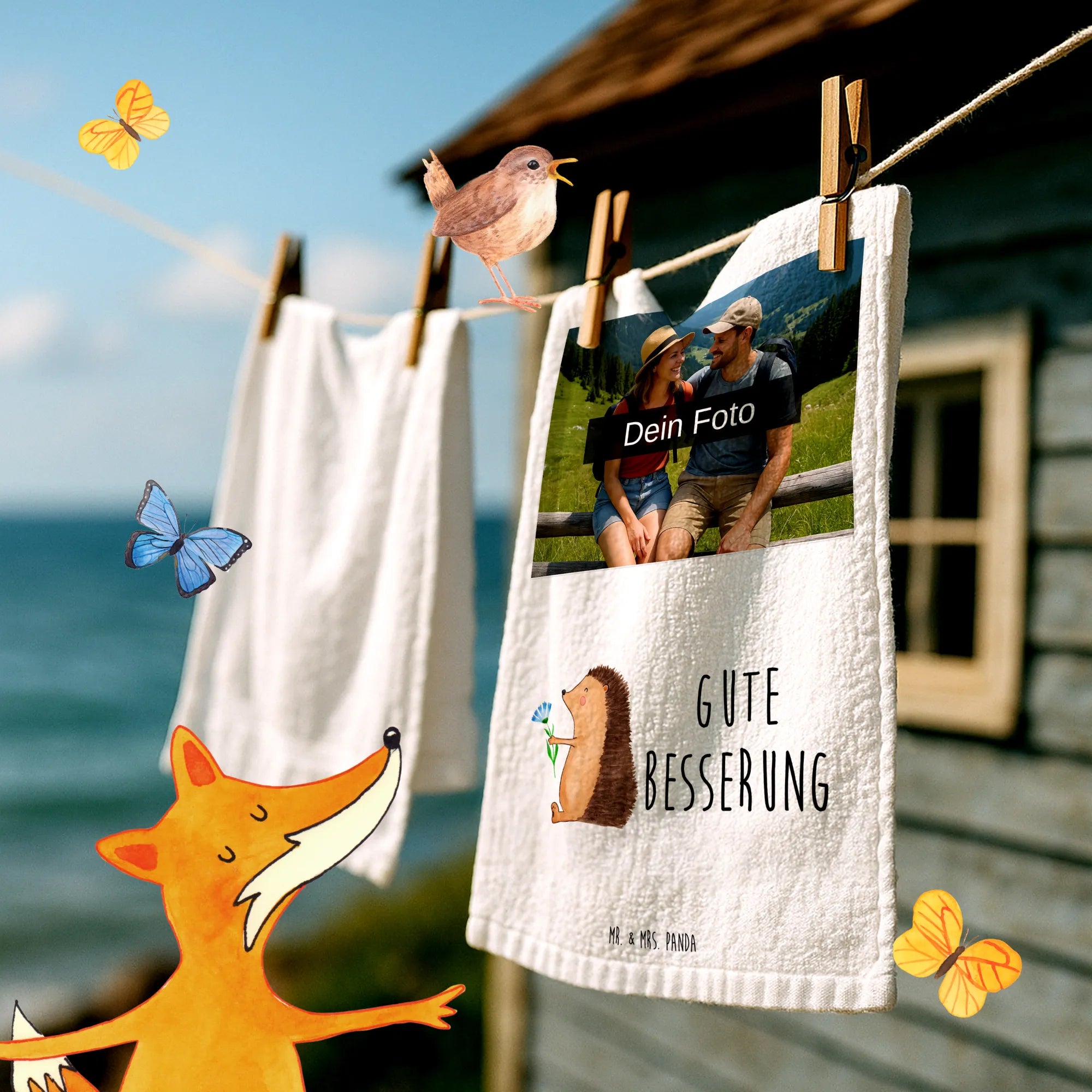 Personalisiertes Foto Gästehandtuch Igel Blumen – Mr. & Mrs. Panda