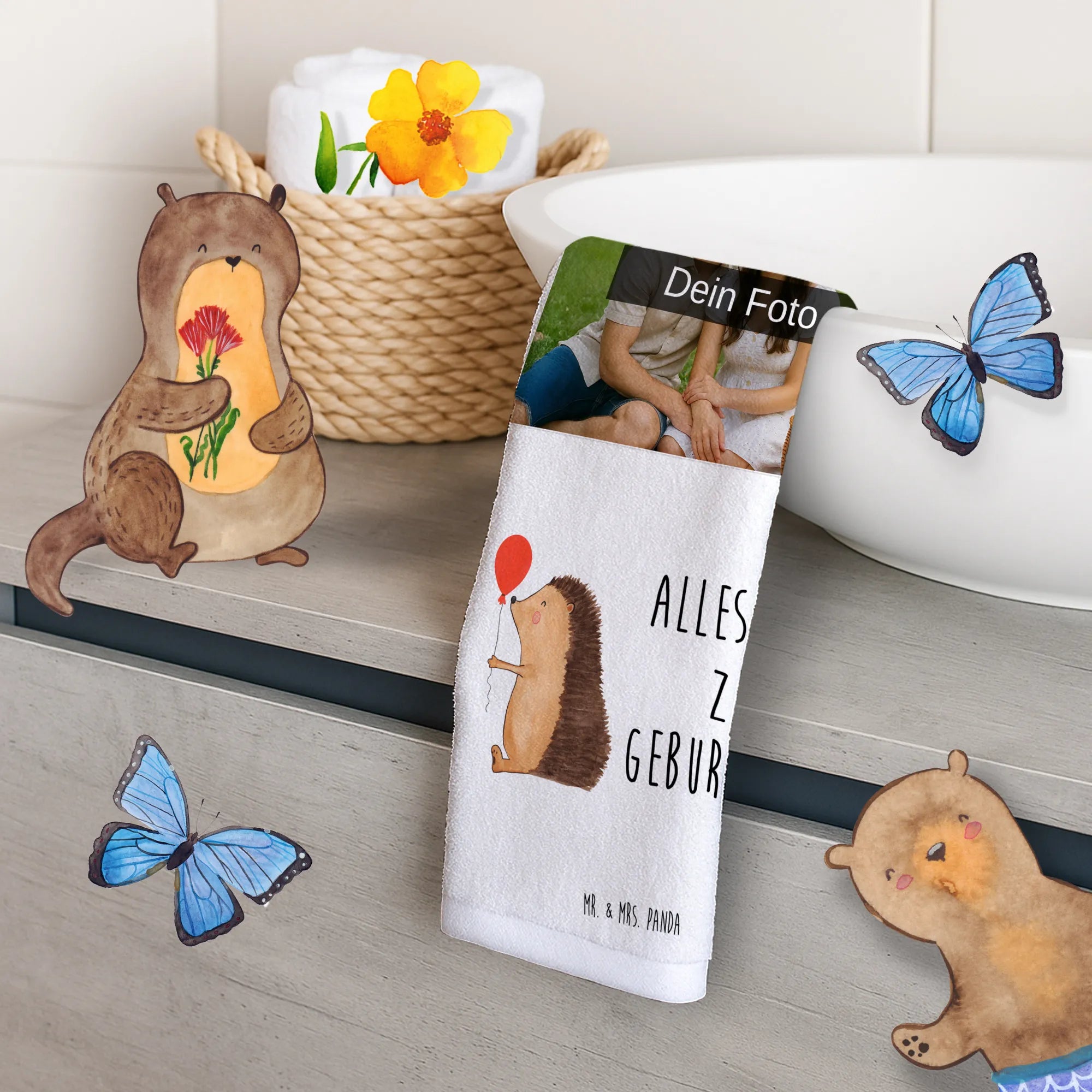 Personalisiertes Foto Gästehandtuch Igel Luftballon