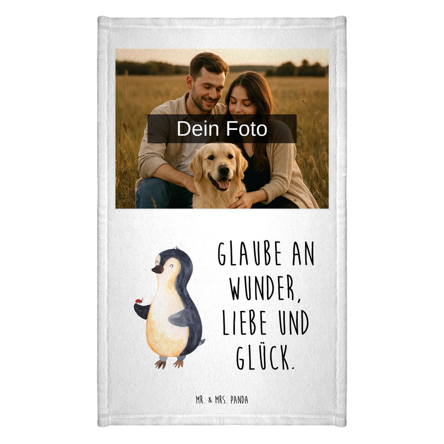 Personalisiertes Foto Gästehandtuch Pinguin Marienkäfer