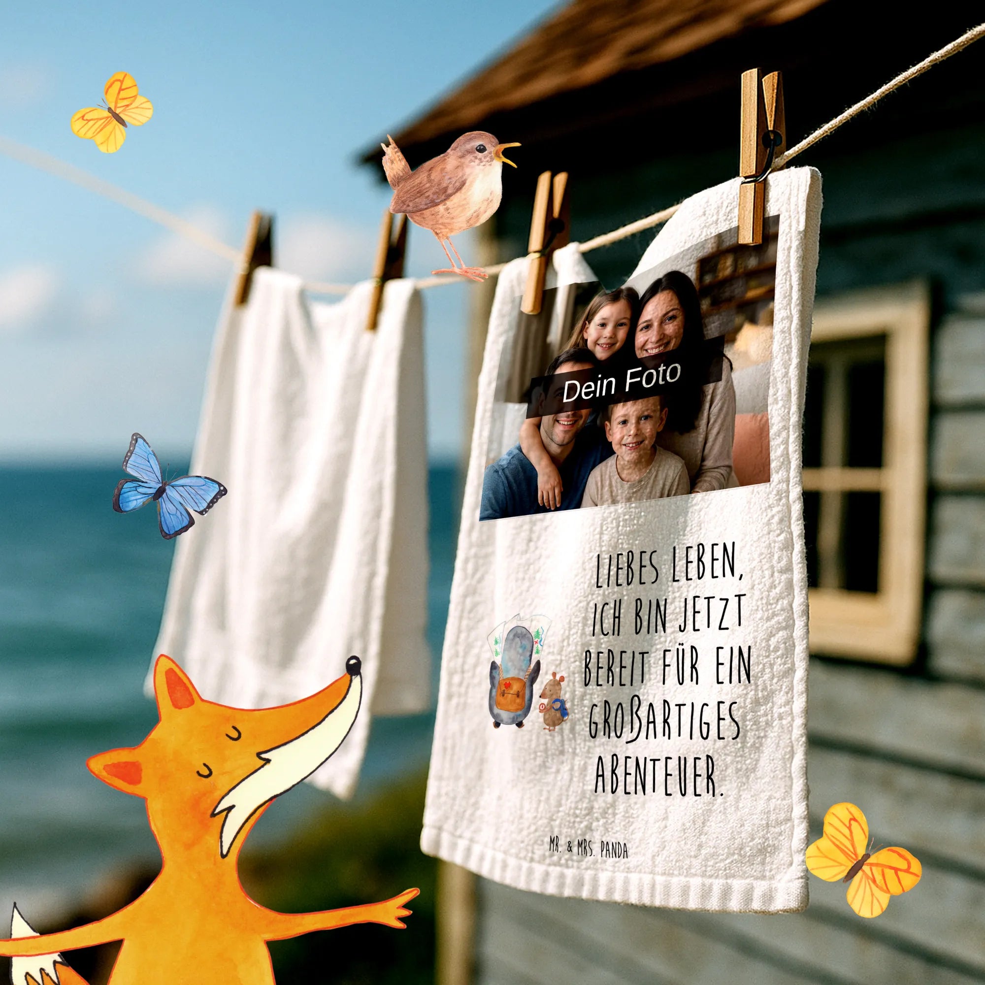 Personalisiertes Foto Gästehandtuch Pinguin & Maus Wanderer