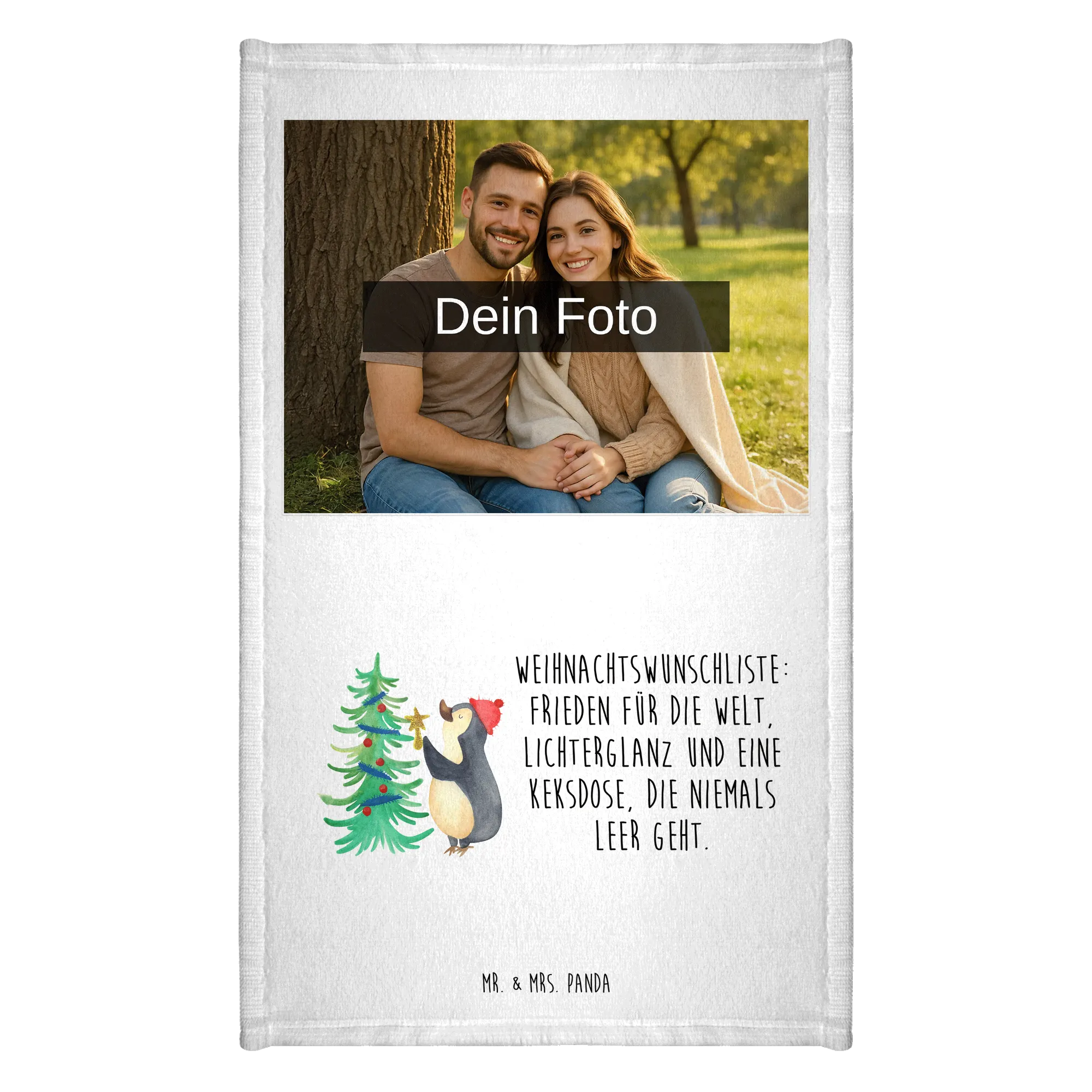Personalisiertes Foto Gästehandtuch Pinguin Weihnachtsbaum