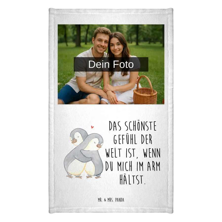 Personalisiertes Foto Gästehandtuch Pinguine Kuscheln