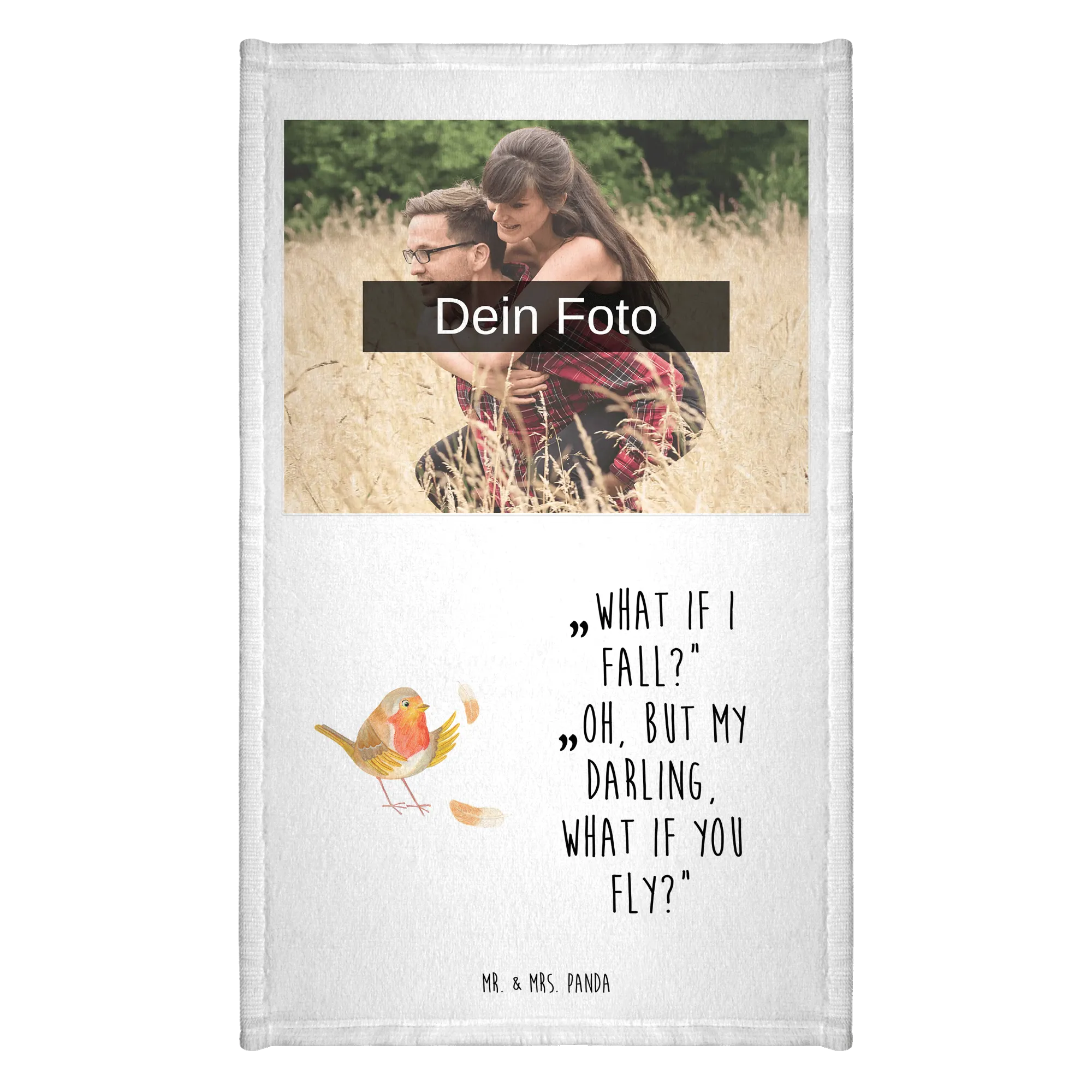 Erfreue dich an der Einzigartigkeit eines personalisierten Foto Gästehandtuchs von Mr. & Mrs. Panda! Mit seinen Maßen von 300 mm x 500 mm ist es ein idealer Begleiter für dein Gästebad. Das Handtuch besticht durch hochwertige Druckgrafiken mit den beliebten Illustrationen von Mr. & Mrs. Panda. Kreiere dein persönliches Handtuch mit einem Wunschfoto und bringe deine Erinnerungen in dein Badezimmer! Achte darauf, dass das Bild eine hohe Auflösung hat, damit die Farben strahlen können. Aus einer weichen Baumwollmischung gefertigt, sorgt es für besten Komfort. Pflege es einfach bei 30°C in der Maschine – schnell und unkompliziert! Ein tolles Geschenk für Freunde oder ein schöner Hingucker für dich selbst!