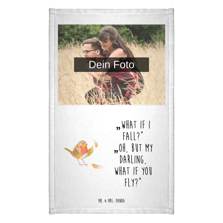 Personalisiertes Foto Gästehandtuch Rotkehlchen Federn