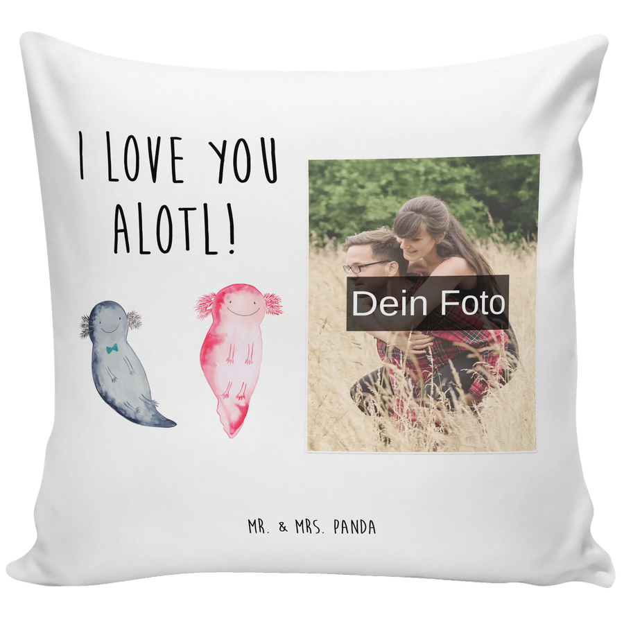 Entdecke das perfekte Geschenk für deine Liebsten mit dem personalisierten Foto Kissen 'Axolotl Liebe' aus der bezaubernden Liebe Kollektion von Mr. & Mrs. Panda!