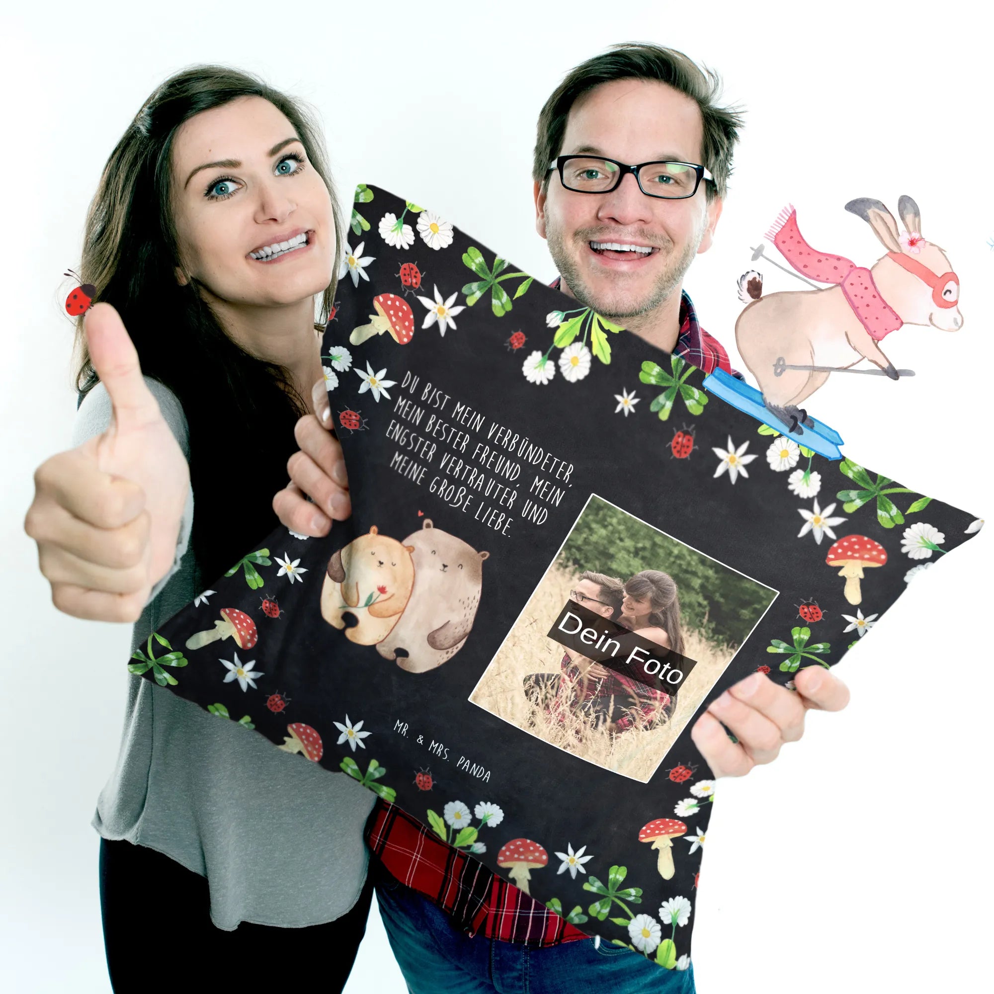 Suchst du das perfekte Geschenk für deinen Partner oder deine Partnerin? Unser personalisiertes Foto Kissen mit dem wunderschönen Motiv "Bären Liebe" aus der exklusiven Kollektion Liebe von Mr. & Mrs. Panda ist genau das richtige! Verliebt sein ist ein wunderbares Gefühl, und dieses Kissen bringt es perfekt zum Ausdruck.