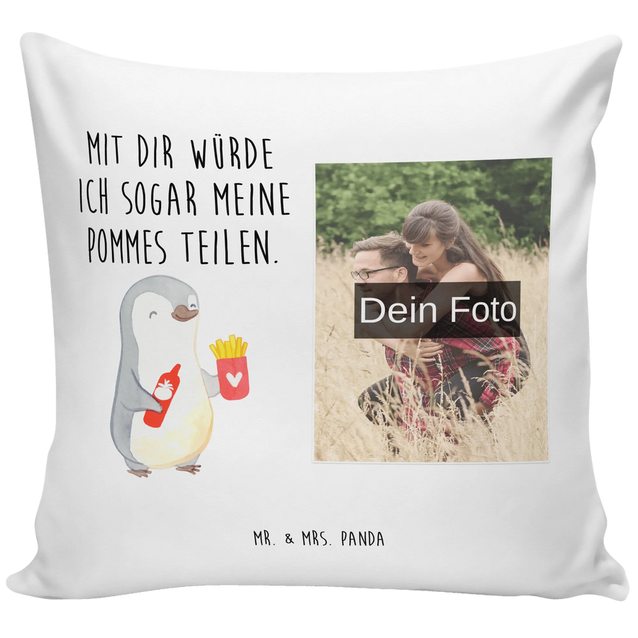 Das personalisierte Foto Kissen mit dem niedlichen Pinguin-Motiv ist das perfekte Geschenk für jeden Anlass! Ob zum Valentinstag, Hochzeitstag oder einfach nur als Liebesbeweis – es zaubert ein Lächeln auf das Gesicht Deiner Liebsten! Mit den Worten "Mit dir würde ich sogar meine Pommes teilen" drückt dieses Kissen nicht nur Deine Zuneigung aus, sondern zeigt auch, wie wichtig jemand für Dich ist. Jeder liebt Pommes, und welches Kissen könnte dazu passender sein als dieses?