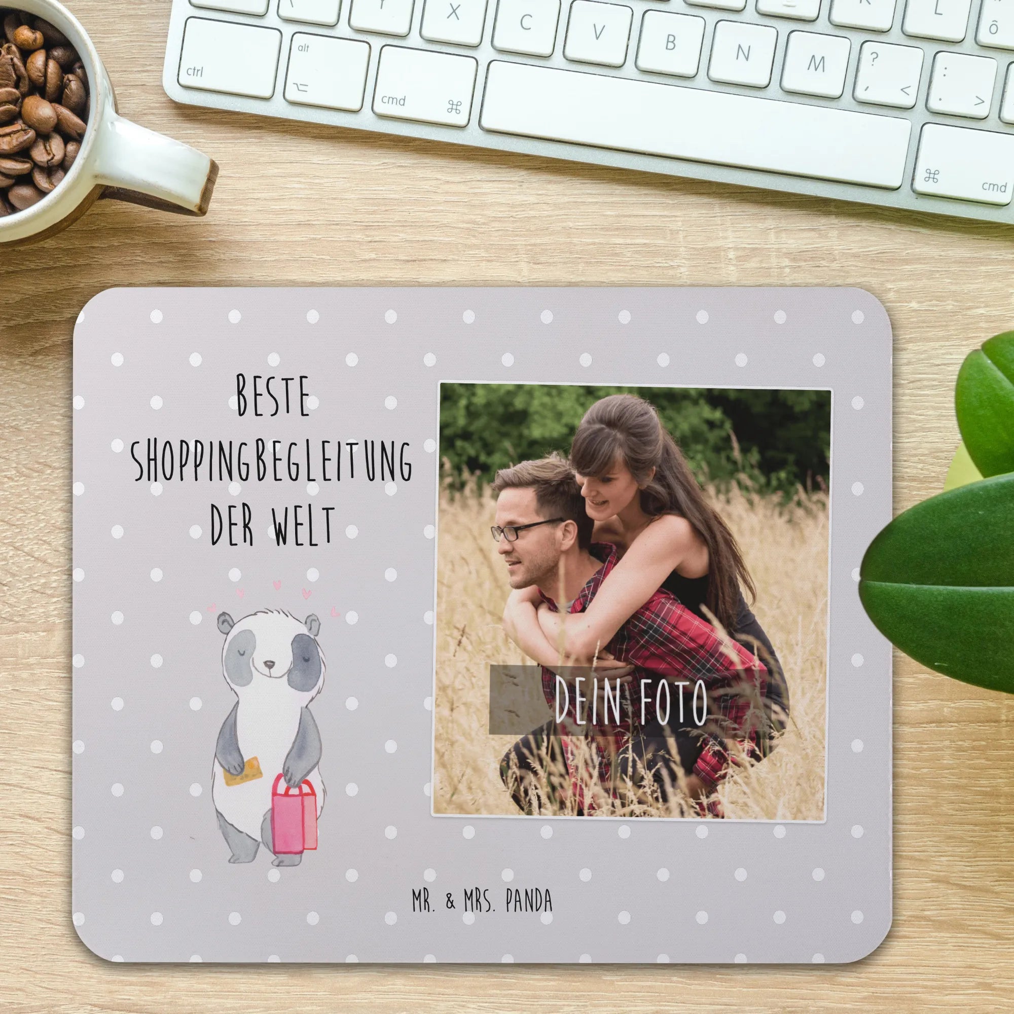 Entdecke das bezaubernde personalisierte Foto Mauspad mit dem Motiv "Beste Shoppingbegleitung der Welt" von Mr. & Mrs. Panda!