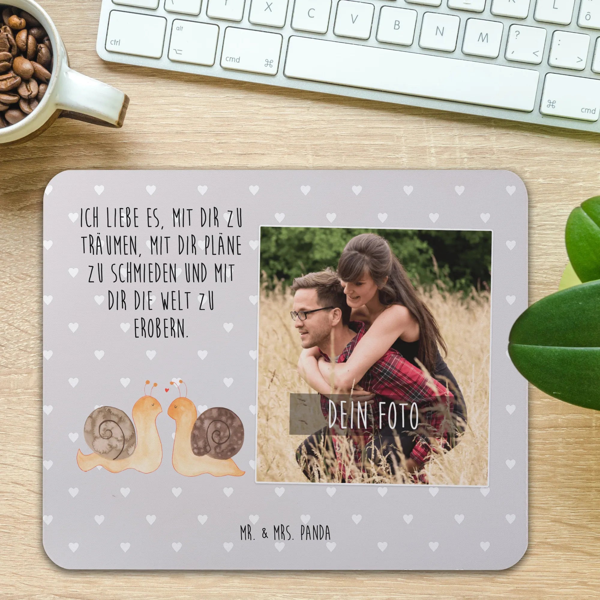 Das personalisierte Foto Mauspad "Schnecken Liebe" von Mr. & Mrs. Panda ist das perfekte Geschenk für Verliebte! Egal ob zum Jahrestag, Hochzeitstag oder als besonderes Liebesgeschenk – es punktet durch Individualität und eine süße Botschaft.