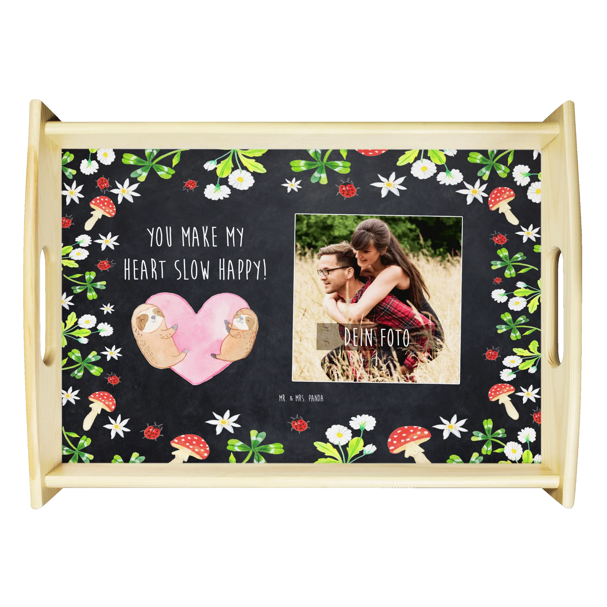 Personalisiertes Foto Serviertablett Faultiere Herz - Kreidetafel