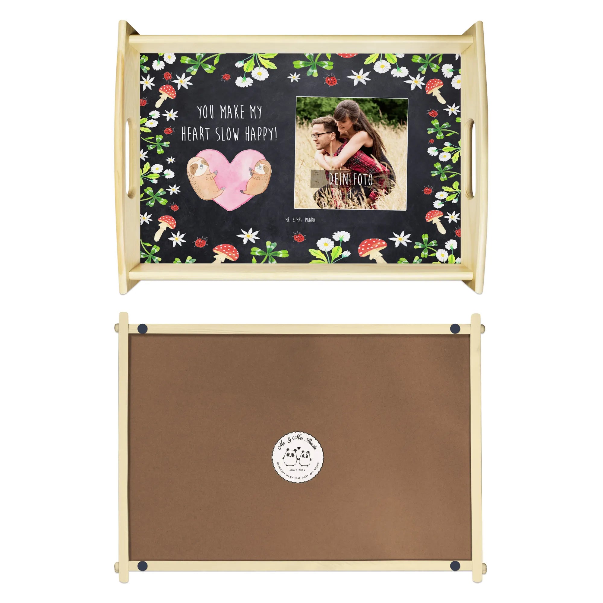 Das personalisierte Foto Serviertablett Faultiere Herz von Mr. & Mrs. Panda ist das perfekte Geschenk für deine Liebsten! Egal ob es sich um den Valentinstag, den Hochzeitstag oder einen Jahrestag handelt, dieses einzigartige Tablett erfüllt all deine Erwartungen. Es ist individuell mit deinem Wunschtext oder Foto gestaltbar, was es zu einem liebevollen Liebesgeschenk macht, das von Herzen kommt. Die charmanten Faultiere, die innig in einem herzförmigen Aquarellmotiv dargestellt sind, strahlen Wärme und Zuneigung aus. Mit der Aufschrift "You make my heart slow happy!" wird deine Botschaft noch persönlicher und süßer.